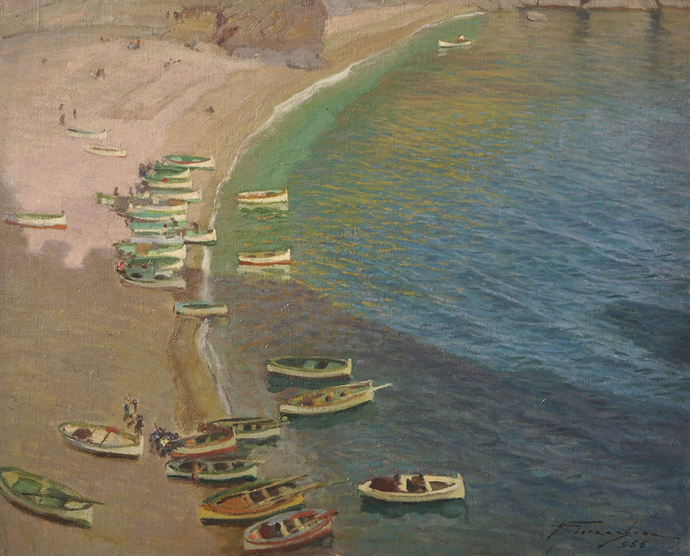 Ulderico Giovacchini Florenz/Firenze 1890 – Bozen/Bolzano 1965) Marina, 1956;Olio su compensato, 55 x 68,5 cm