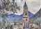 Wilhelm Nicolaus Prachensky (Innsbruck 1898 – Innsbruck 1956) Merano, 1953;Tempera su carta, 61 x 86 cm, in cornice