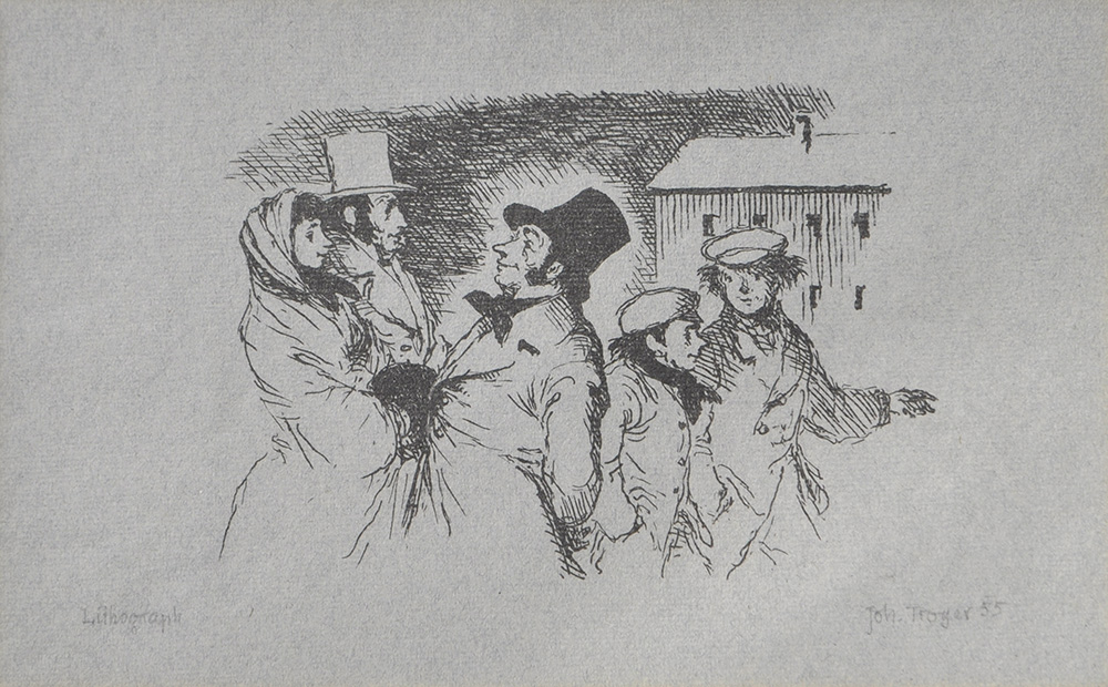 Johannes Troyer (Sarnthein/Sarentino 1902 – Innsbruck 1969) Conversazione, 1955;Litografia, 15 x 24 cm, in cornice