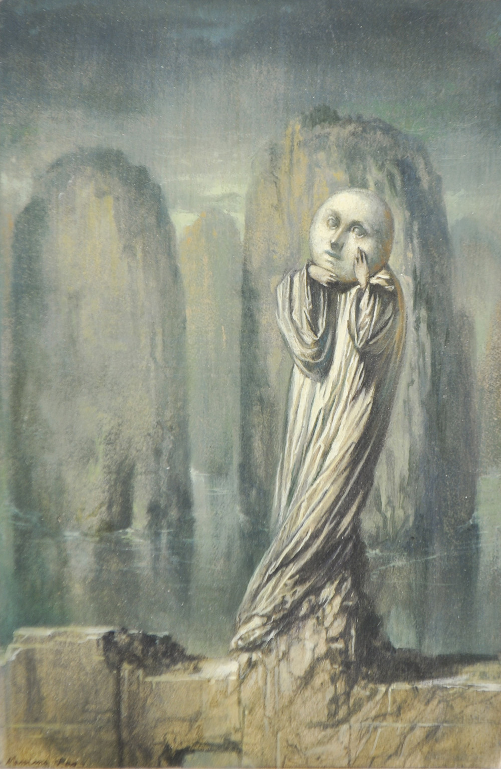 Massimiliano Rao (San Salvatore Telesino 1950 – San Venanzo 1996) Figura metafisica;Olio su tavola, 20,2 x 13,3 cm