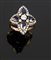 ANELLO Anello in oro giallo, sommità a forma di fiore, in oro bianco con zaffiri di taglio a goccia e diamanti taglio brillante 8/8 per complessivi ct 0,70 Peso gr. 8,00
