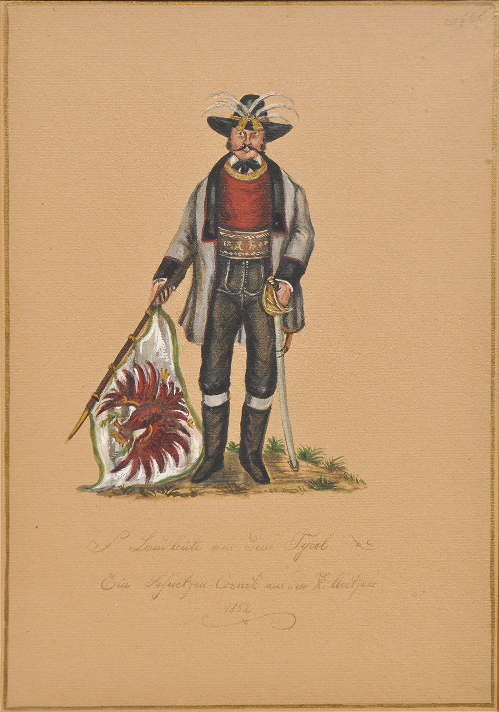 A. Villers “Ein Schützen-Cornel aus dem Zillerthale“,1852;Tempera, 32 x 22,5...
