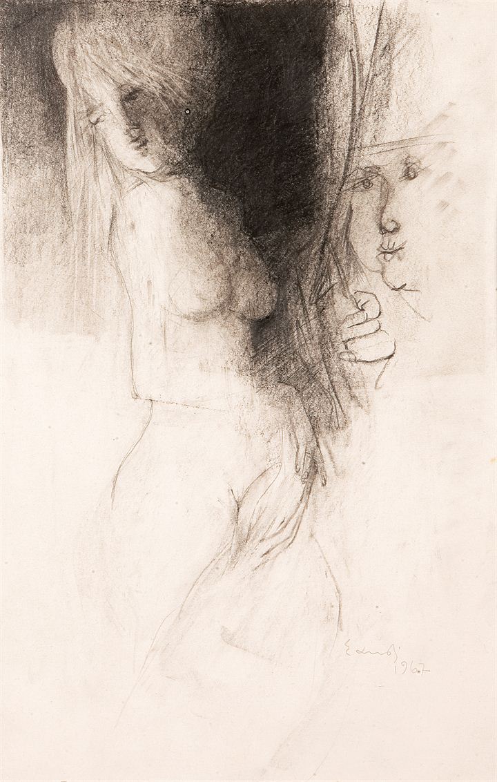 EANDI FERNANDO Torino 1926 "Serata fuori casa" 1967 29x19 carboncino su carta...