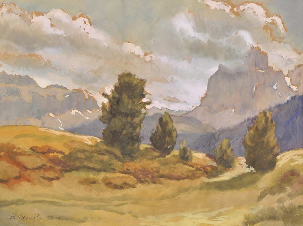Peter Demetz Paesaggio delle Dolomiti, 1943;Guazzo, 41,5 x 55 cm Firma e data