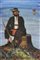 Hans Kompatscher (Völs am Schlern/r 1906 – Bozen 1988) Contadino con cane;Olio su cartone, 15 x 9,5 cm, in cornice