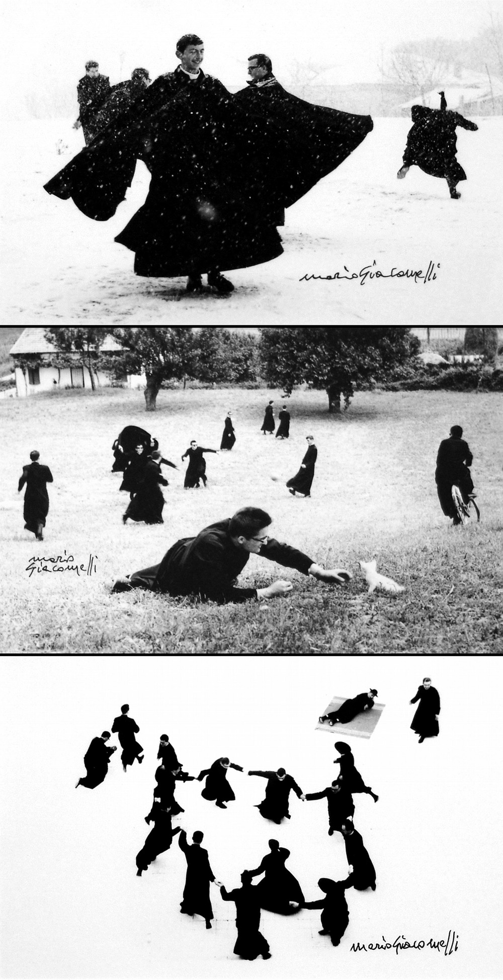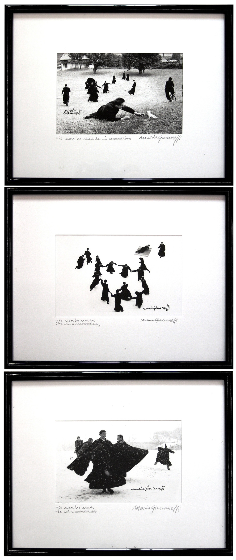 Mario Giacomelli 1925, Senigallia (An) - 2000, Senigallia (An) - [Italia] Io non ho mani che mi accarezzino (lotto unico con tre opere) fotografia 12x18 cm cad. 3 fotografie firmate dall’artista in basso a destra e sul passepartout; opere con cornice certificato di autenticità Picenum