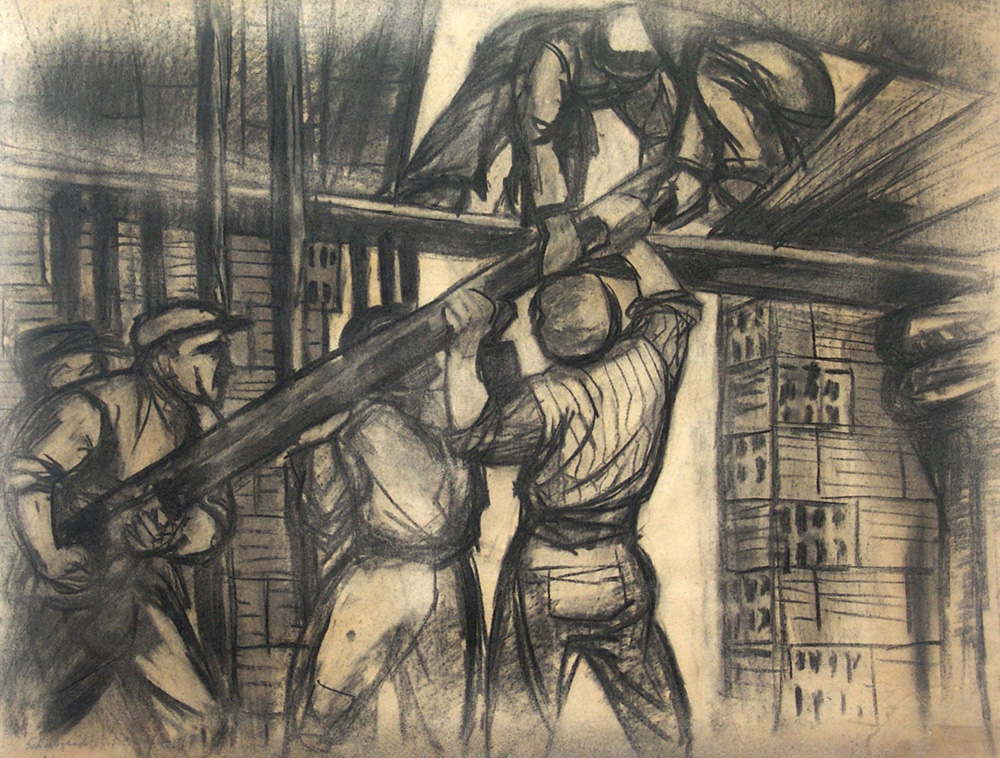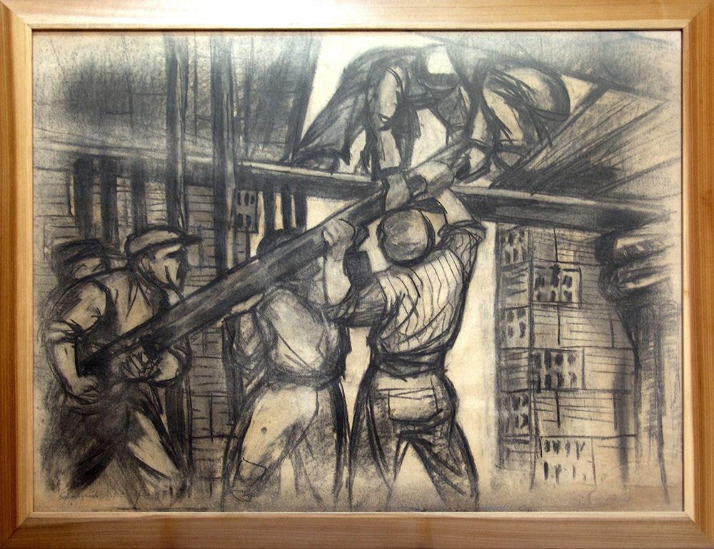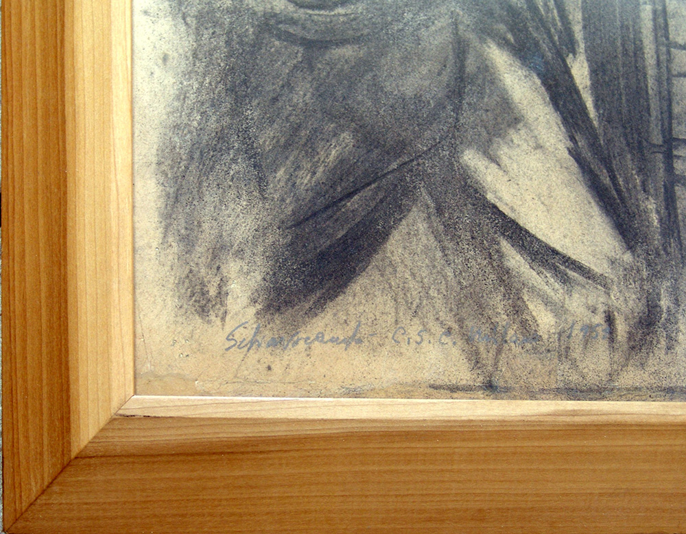 Paolo Schiavocampo 1924, Palermo (Pa) - [Italia] C.S.C. Milano matita e carbone su carta 75x100 cm 1951 firma dell’artista in basso a sinistra; opera con cornice certificato di autenticità dell'artista su fotografia