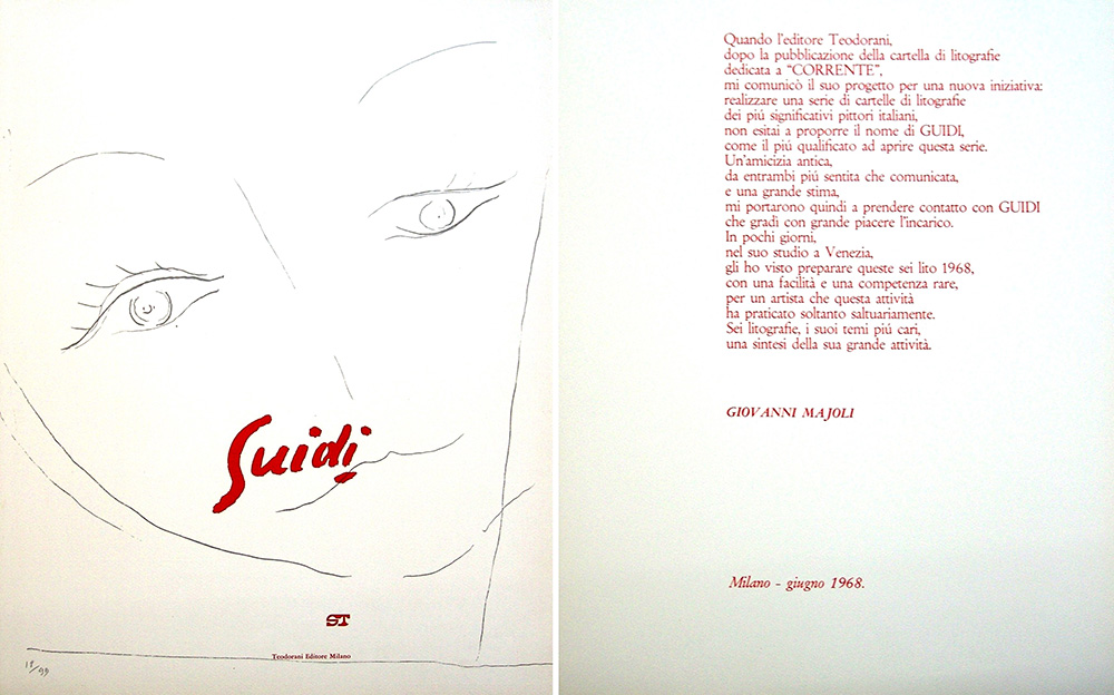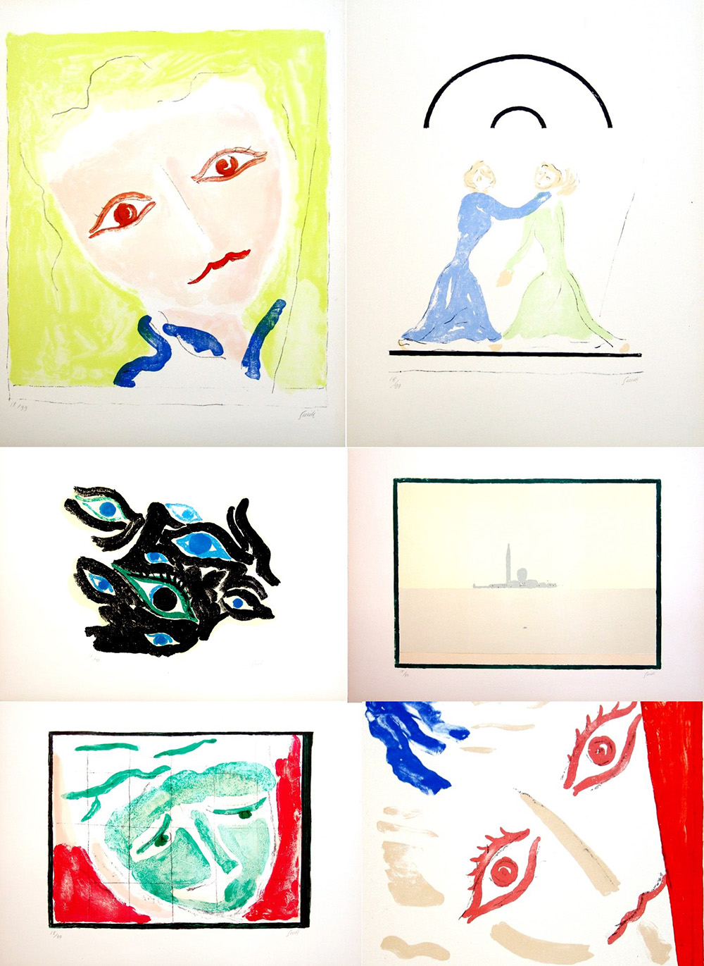 Virgilio Guidi 1891, Roma (Rm) - 1984, Venezia (Ve) - [Italia] Incontro, S. Giorgio, Prigioniere, Occhi nello spazio, Testa, Cielo inquieto litografia 63x48 cm cad. 1968 es. 18/99; cartella con 6 litografie firmate dall’artista; Teodorani Editore certificato di autenticità Picenum