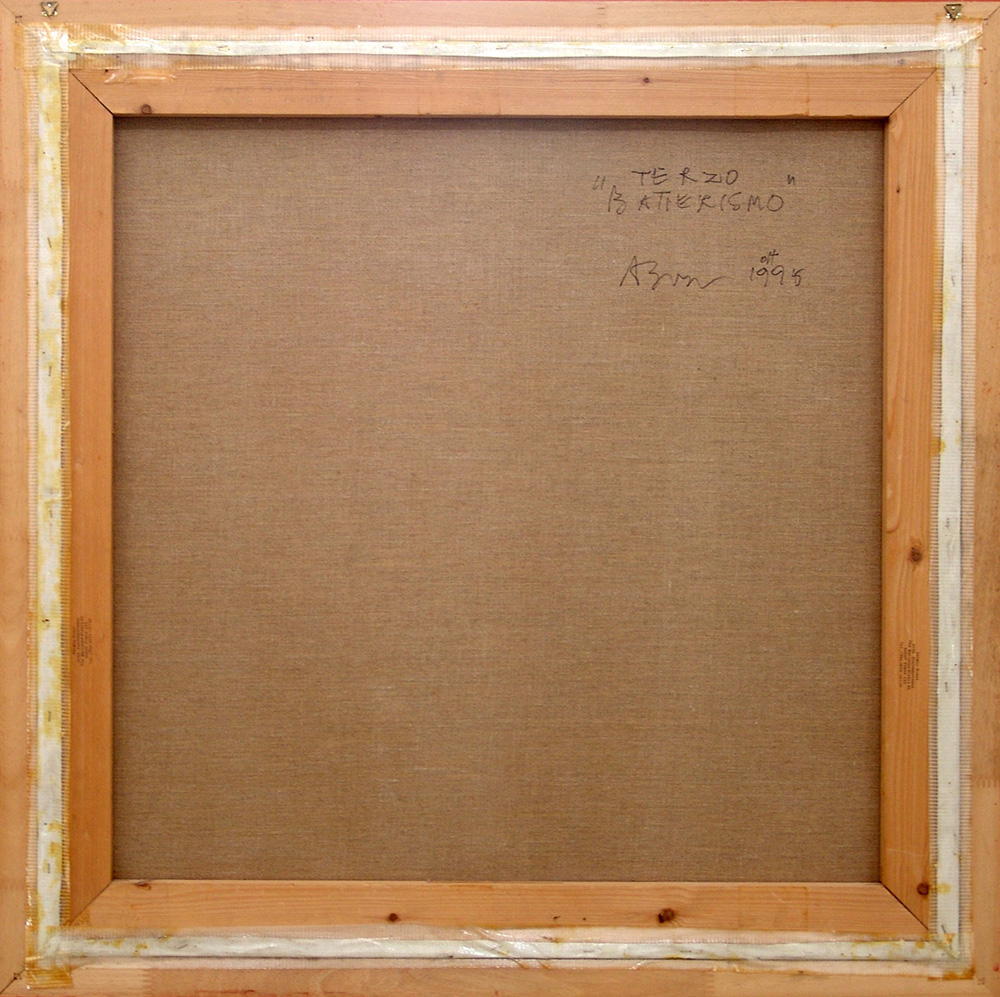 Alessandro Bazan 1966, Palermo (Pa) - [Italia] Terzo batterismo olio su tela 100x100 cm 1995 firma dell’artista sul retro; opera con cornice certificato di autenticità della Galleria Sergio Tossi di Prato firmato dall'artista