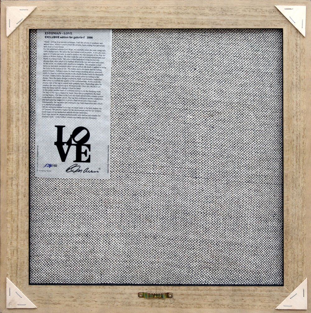 Robert Indiana 1928, New Castle (Indiana) - [USA] Estonian Love tappeto 38,1x38,1 cm 2006 esemplare n. 127 cartiglio sul retro della Galerie-F