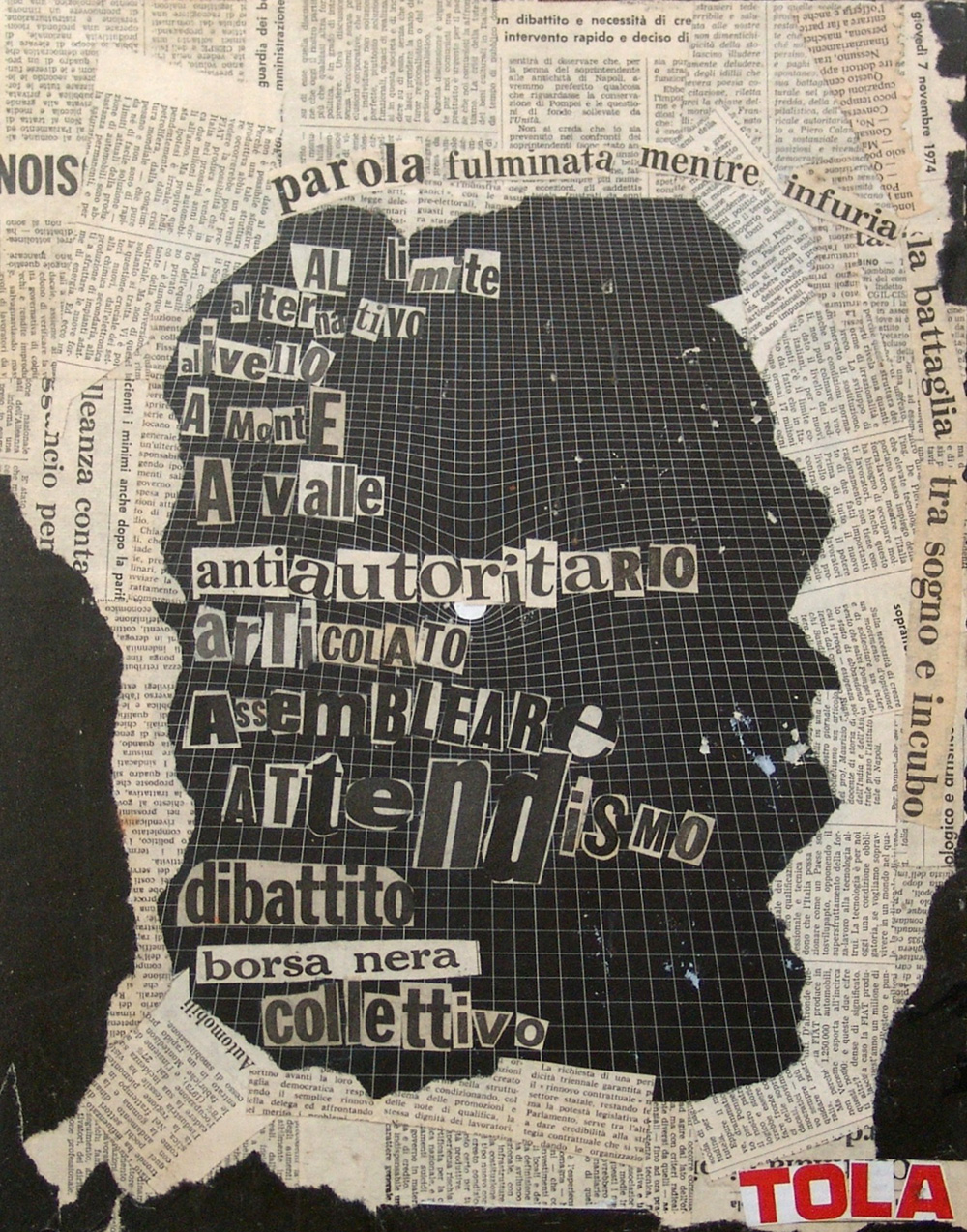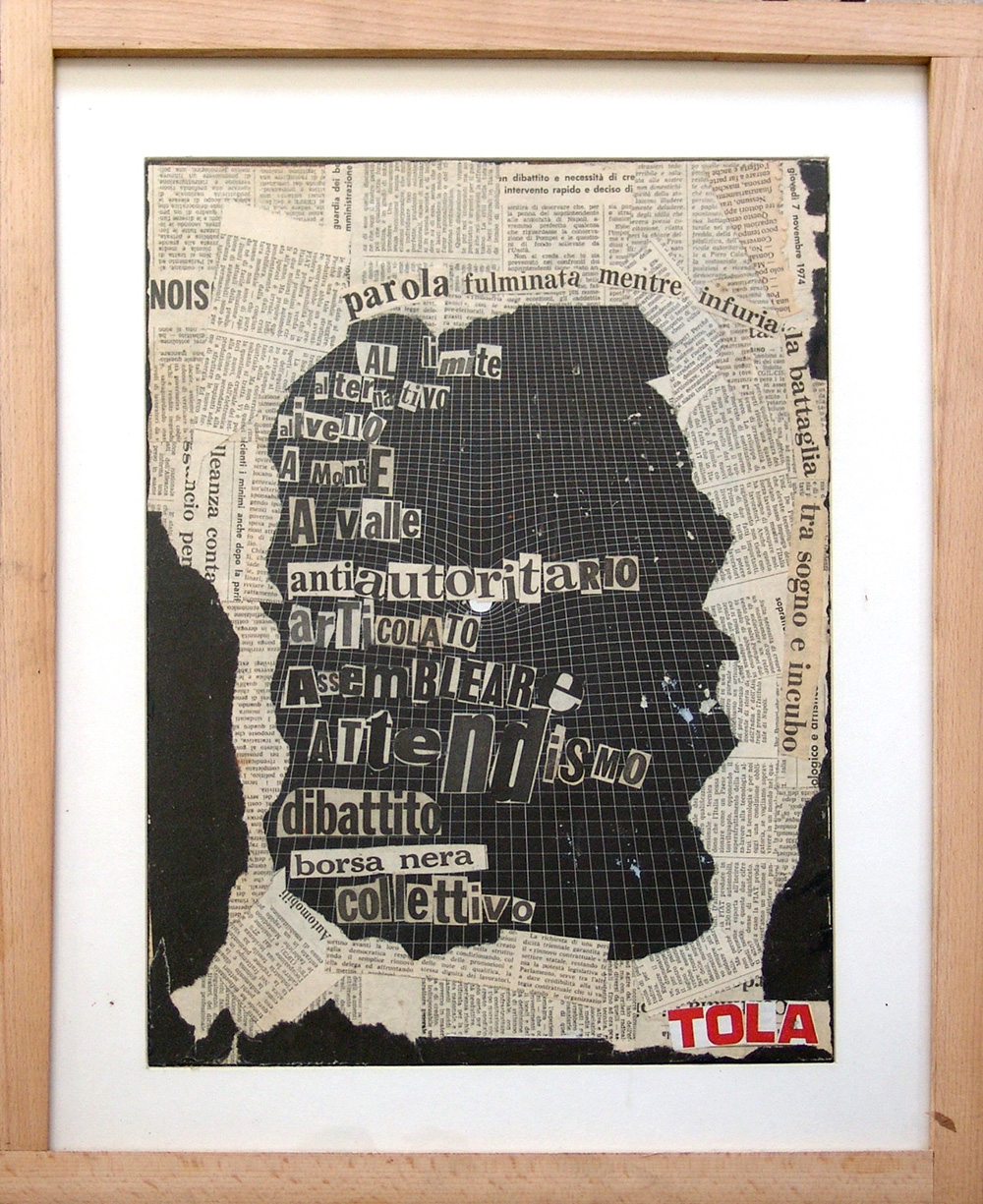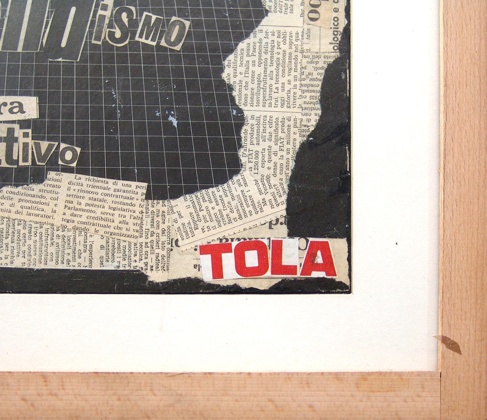 Luigi Tola 1930, Genova (Ge) - 2014, Genova (Ge) - [Italia] senza titolo tecnica mista e collage su carta 40x30 cm 1974 firma dell’artista in basso a destra; opera con cornice certificato di autenticità dell'artista su fotografia