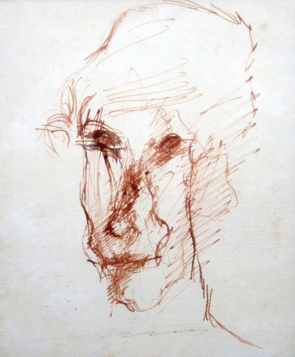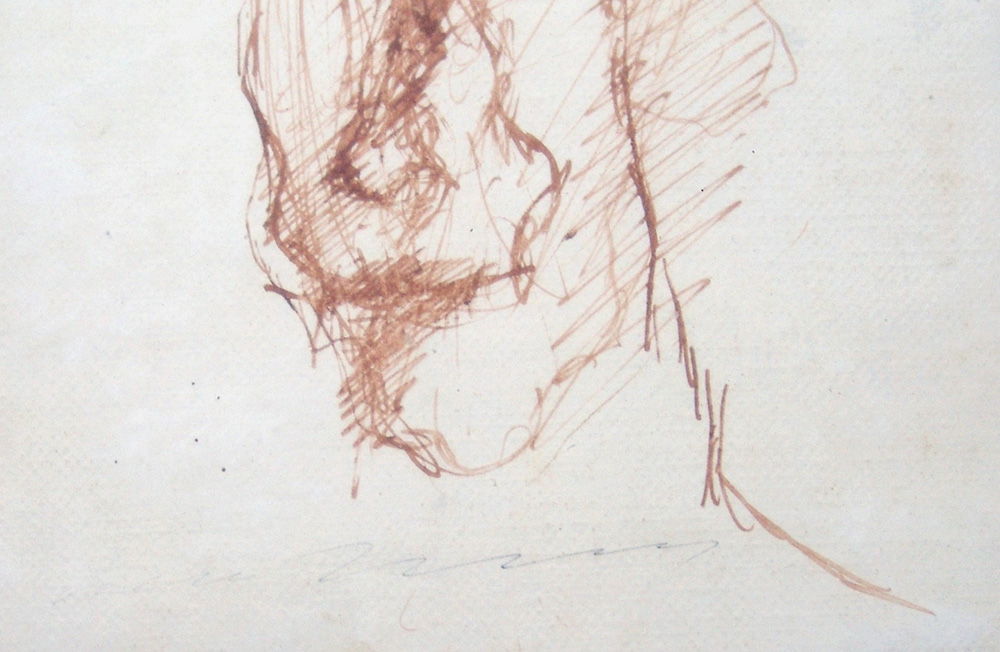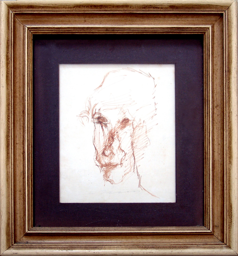 Ernesto Treccani 1920, Milano (Mi) - 2009, Milano (Mi) - [Italia] Ritratto china su cartone telato 28x22 cm 1971 firma dell'artista in basso al centro; opera con cornice certificato di autenticità Picenum