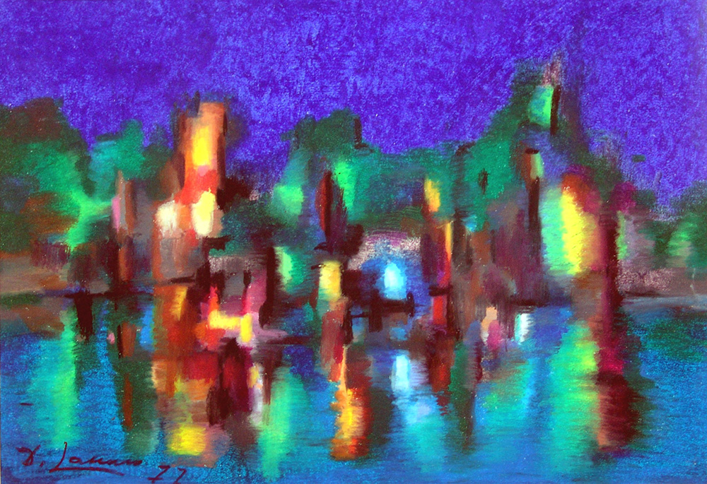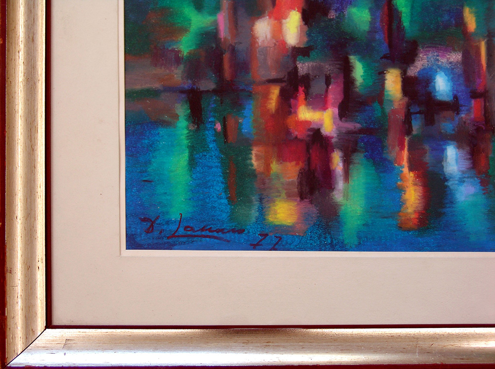Dino Lanaro 1909, Malo (Vi) - 1998, Milano (Mi) - [Italia] senza titolo acquerello su carta 30x45 cm 1977 firma dell'artista in basso a sinistra; opera con cornice certificato di autenticità Picenum