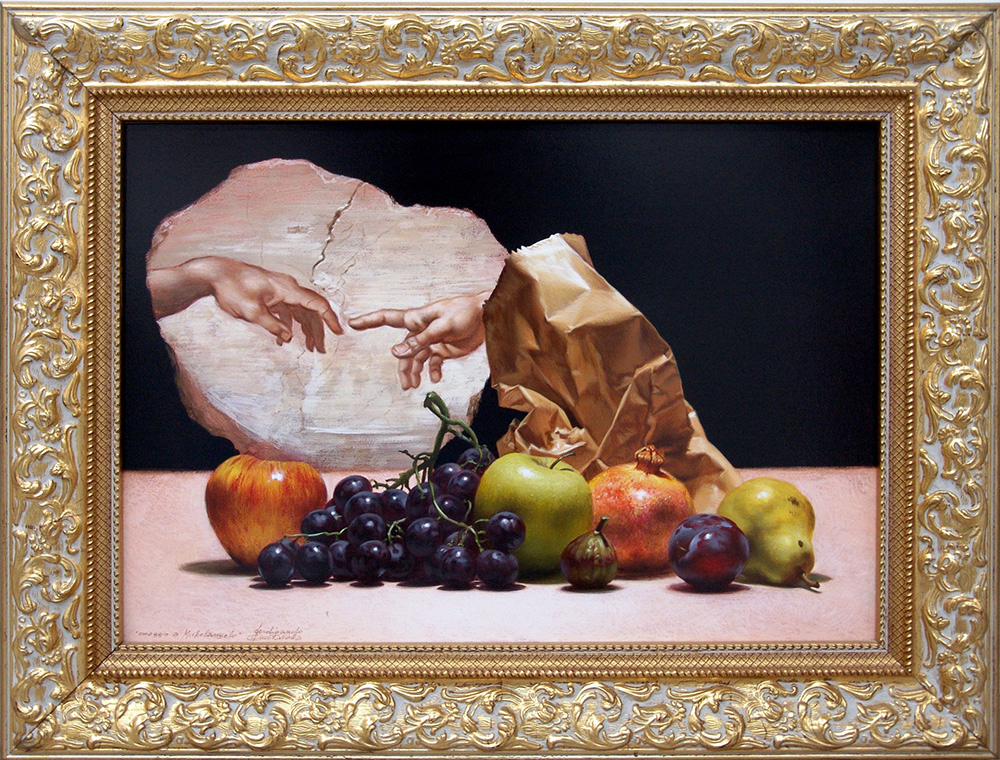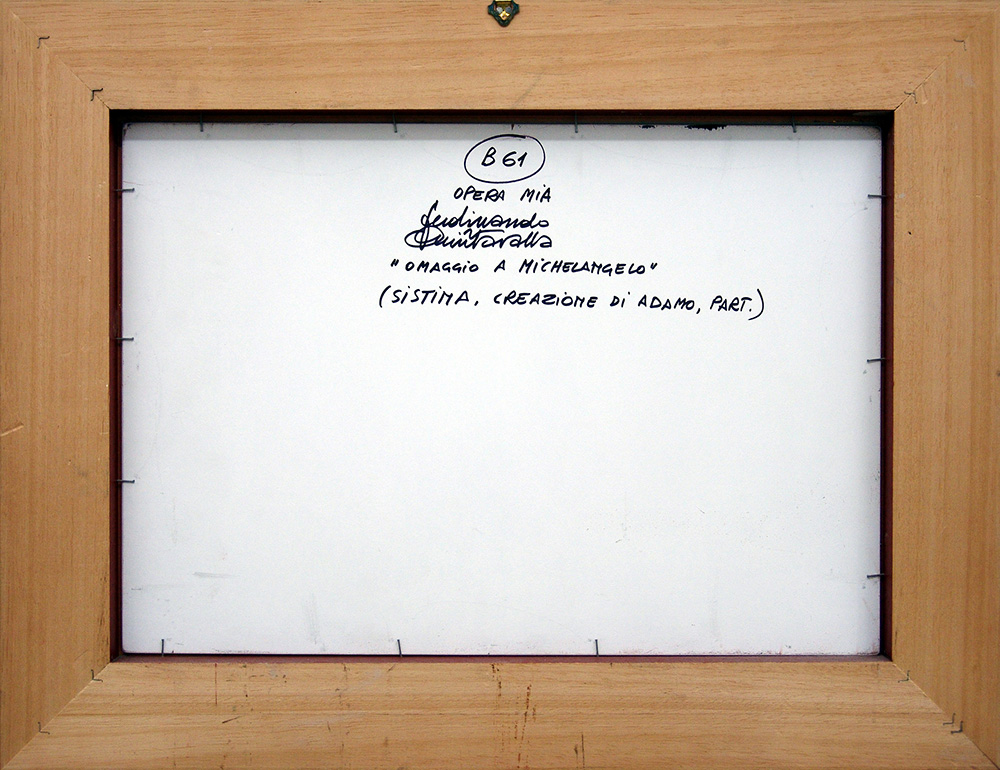 Ferdinando Quintavalla 1951, Parma (Pr) - [Italia] Omaggio a Michelangelo olio su tavola 40x50 cm firma dell’artista in basso a sinistra e sul retro; opera con cornice certificato di autenticità dell'artista su fotografia