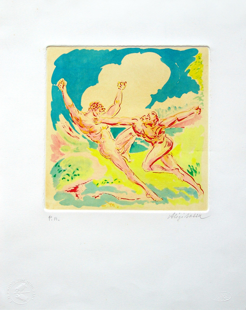 Aligi Sassu 1912, Milano (Mi) - 2000, Pollença (Spagna) - [Italia] senza titolo acquaforte acquatinta 43x34 cm es. p.a.; firma dell’artista in basso a destra certificato di autenticità Picenum