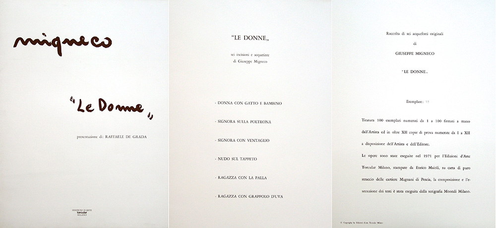 Giuseppe Migneco 1908, Messina (Me) - 1997, Milano (Mi) - [Italia] Le donne acquaforte acquatinta 70x50 cm cad. 1971 es. 39/100; cartella con 6 acqueforti acquetinte firmate dall’artista; Edizioni d'arte Torcular certificato di autenticità Picenum