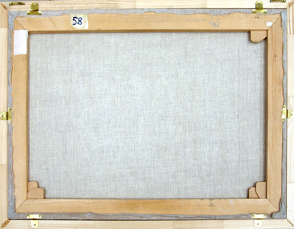 Ennio Finzi 1931, Venezia (Ve) - [Italia] senza titolo tecnica mista su carta intelata 67x95 cm 1994 firma dell'artista in basso a destra; opera con cornice certificato di autenticità dell'artista su fotografia; certificato di autenticità della Galleria Savioli Arte di Riccione
