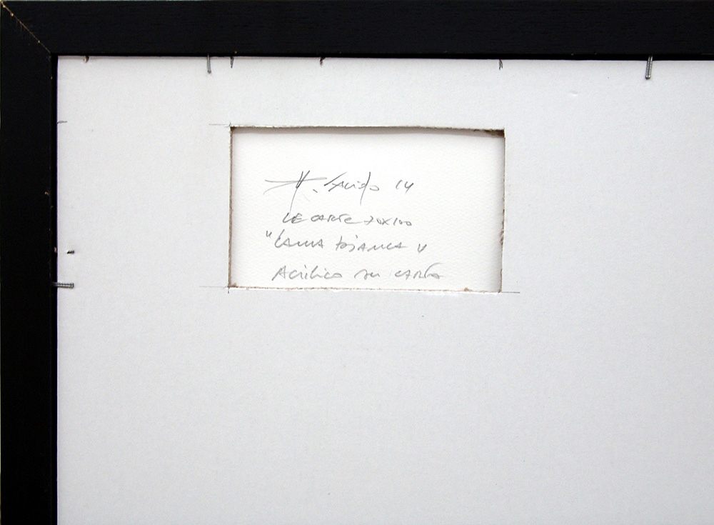 Rino Valido 1947, Varazze (Sv) - [Italia] Lama bianca acrilico su carta 70x100 cm 2014 firma dell'artista in basso a destra e sul retro; opera con cornice certificato di autenticità dell'artista su fotografia; certificato di autenticità della Galleria Savioli Arte di Riccione