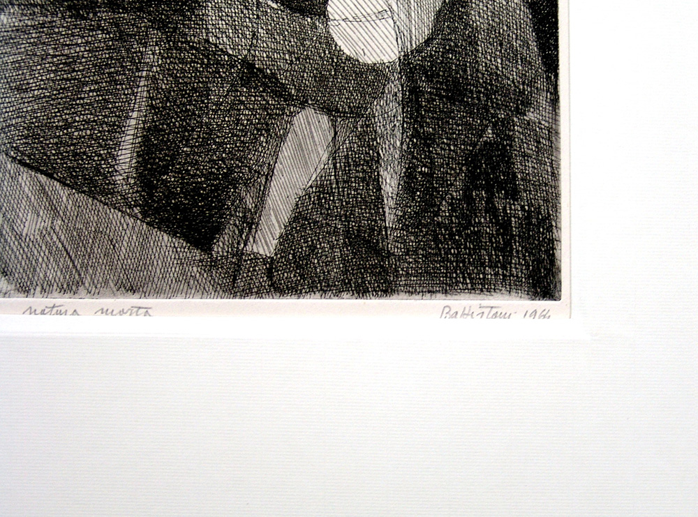 Arnaldo Battistoni 1921, Fano (Pu) - 1990, Pesaro (Pu) - [Italia] Natura morta acquaforte 70x50 cm 1964 non numerato; firma dell'artista in basso a destra; f.to lastra 24,5x22 cm certificato di autenticità Picenum