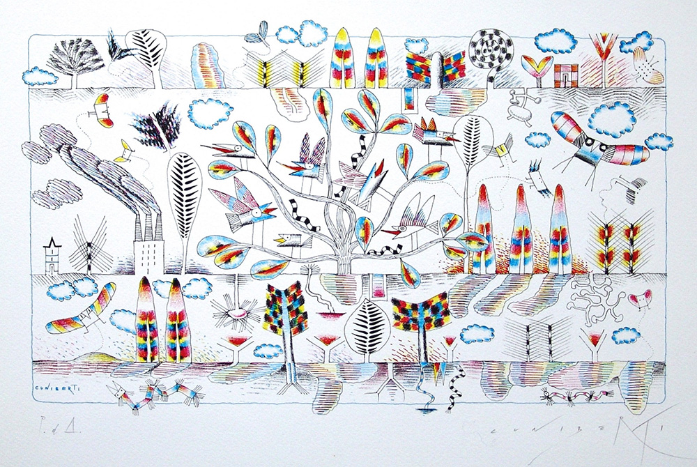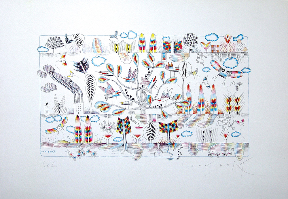 Pier Achille Cuniberti 1923, Sala Bolognese (Bo) - 2016, Bologna (Bo) - [Italia] senza titolo litografia 35x50 cm es. p.d.a.; firma dell’artista in basso a destra certificato di autenticità Picenum