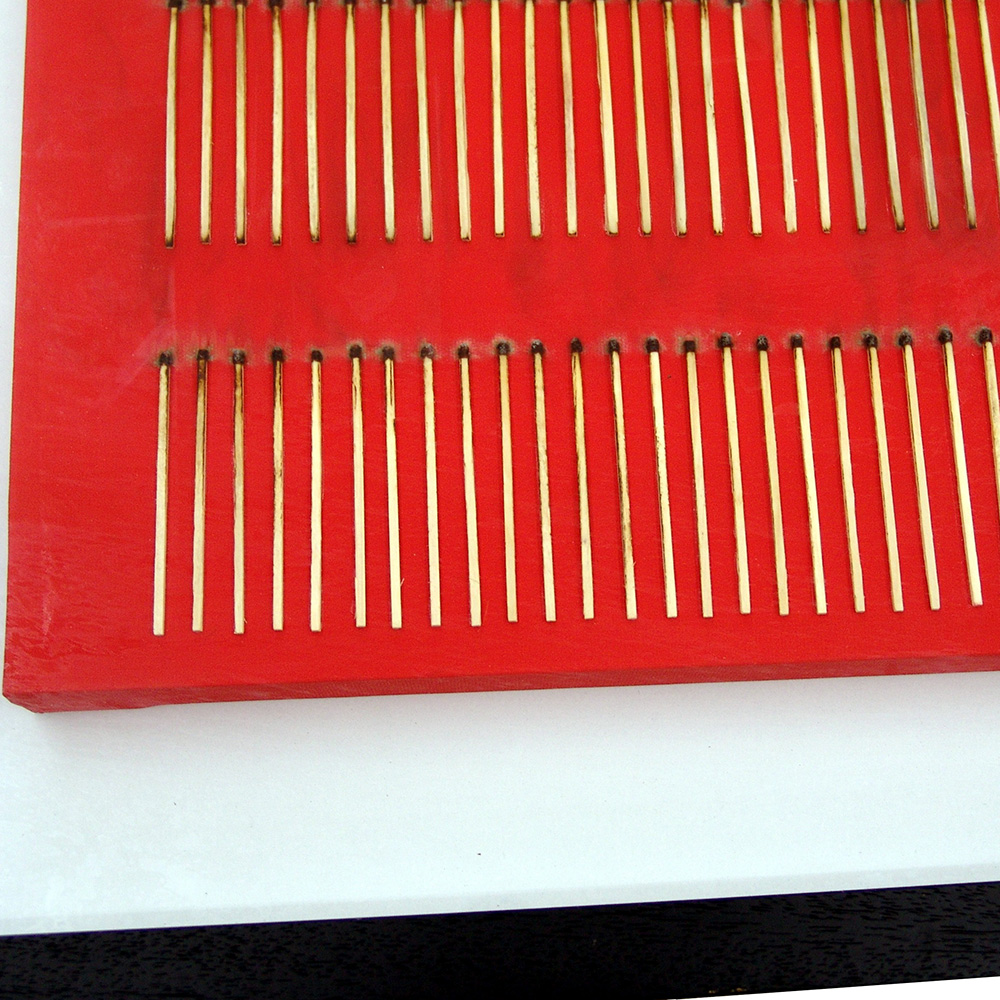 Bernard Aubertin 1934, Fontenay-aux-Roses (Francia) - 2015, Reutlingen (Germania) - [Francia] senza titolo fiammiferi e combustioni su tela 40x40 cm 2011 firma dell’artista sul retro; opera con cornice certificato di autenticità dell'artista su fotografia; certificato di autenticità della Meeting Art di Vercelli