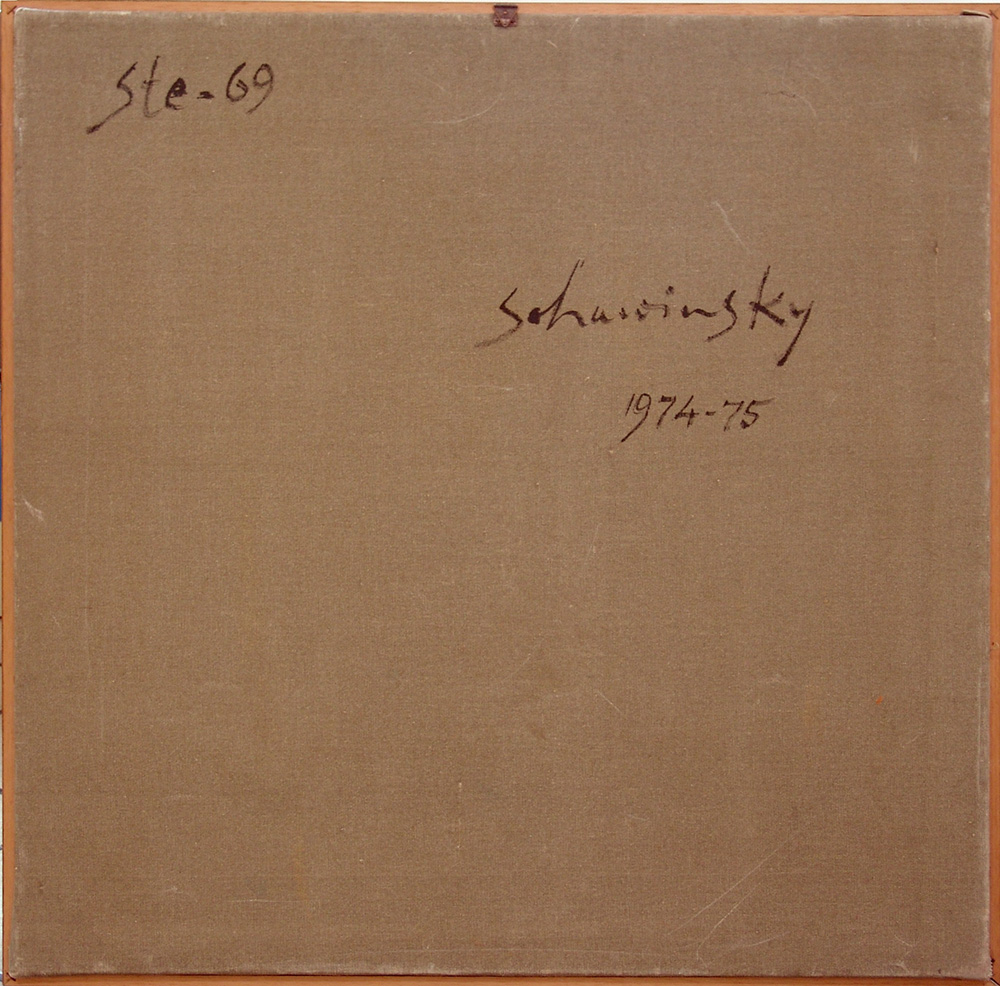 Xanti Schawinsky 1904, Basilea (Svizzera) - 1979, Locarno (Svizzera) - [Svizzera] STE-69 pittura su tulle e juta 68,5x68,5 cm 1974/1975 firma dell'artista sul retro; opera con cornice; provenienza precedente studio dell'artista certificato di autenticità Picenum