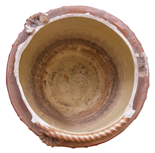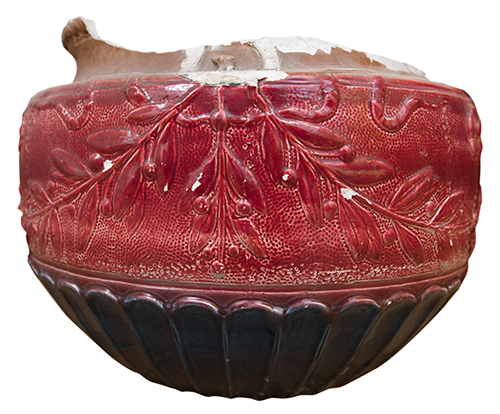 Ceramiche Florio. Inizio del XX secolo Cachet-pot con decoro plastico a tralci di alloro Maiolica 42x53x53 cm Marca: "Cavalluccio marino" Il bene è soggetto a vincolo pertinenziale ex DDS 6852 del 30 /6/08 - 15/4 Condizione supporto: 10% (frattura e mancanza pressoché degli interi collo e labbro) Condizione superficie: 20% Il pezzo venne prodotto per l'arredo delle navi di Ignazio Florio Periodo: XIX sec. Categoria: Ceramiche