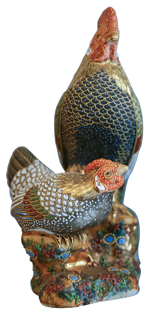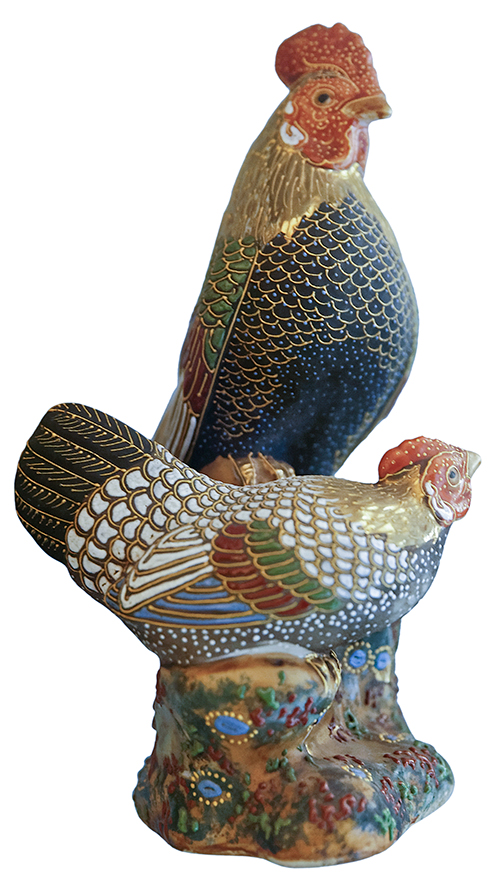 Cina, inizi del XX secolo Gallo e gallina Porcellana in nero e oro, cloisonné policromo 24x12x9,5 cm Il bene è soggetto a vincolo pertinenziale ex DDS 6852 del 30 /6/08 - 15/10 Condizione supporto: Condizione supporto: 100% (lotto non esaminato manualmente) Condizione superficie: 95% Periodo: 1900 - 1960 Categoria: Ceramiche