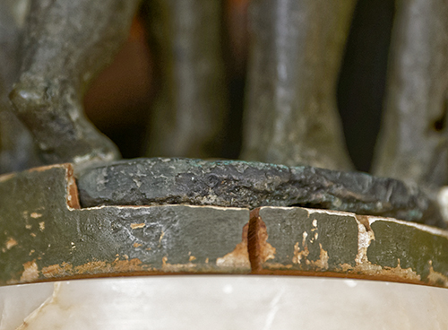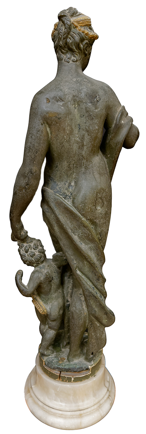 Manifattura meridionale, fine del XIX secolo (?) Venere Bronzo 62x20x18 cm Etichette: "Villa Igiea Grand Hotel 2607", "1201 Roux Italia Srl" Il bene è soggetto a vincolo pertinenziale ex DDS 6852 del 30 /6/08 - 16/5 Condizione supporto: 60% (sbeccature e fratture alla base) Condizione superficie: 70% (danni alla patinatura) Con il successivo lotto, compone una coppia dedicata a Venere e Marte, come rileva Vittorio De Bonis Periodo: XIX sec. Categoria: Sculture