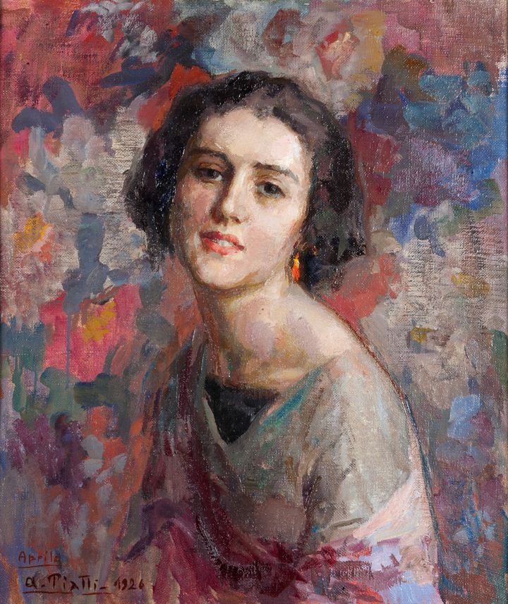 PIATTI ANTONIO Viggiù (VA) 1875 - 1962 "Aprile" 1926 58x50 olio su tela...