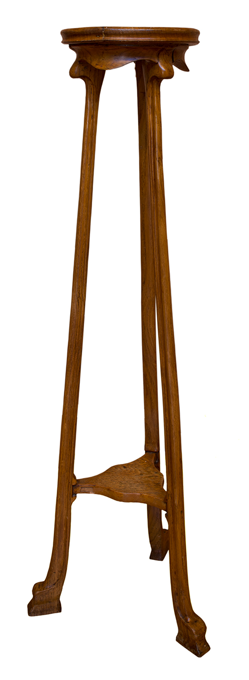 Ernesto Basile (1857-1932), disegno di. Produzione Ducrot (?) Alzata Liberty Legno intagliato e sagomato 121x39 cm Il bene è libero da vincoli Condizione supporto: 80% Condizione superficie: 70% (usura, soprattutto ai piedi) Periodo: 1900 - 1960 Categoria: Mobili