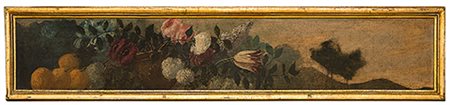 Ditta Angelo Randazzo, Palermo, I metà del XX seoolo Natura morta con fiori Olio su tavola 25x141 cm Il bene è libero da vincoli Condizione supporto: 80% Condizione superficie: 60% (cadute di colore, spelature, crettature, depositi aderenti e non aderenti, ingiallimento vernici protettive) Periodo: 1900 - 1960 Categoria: Dipinti