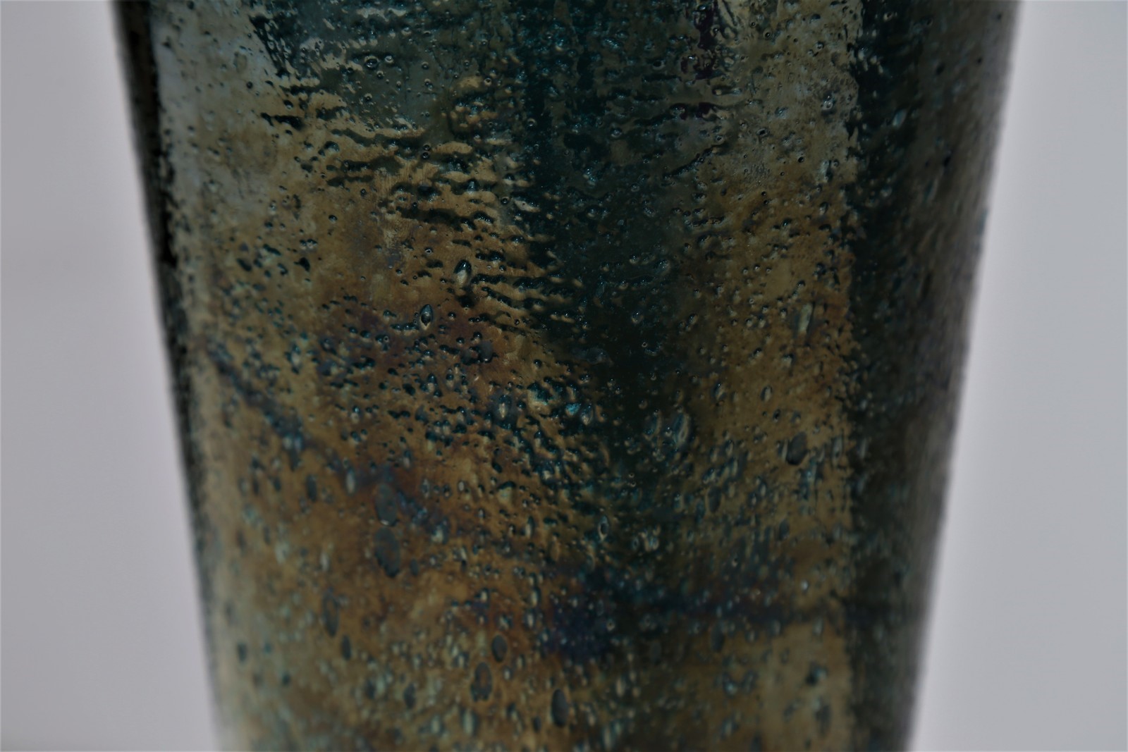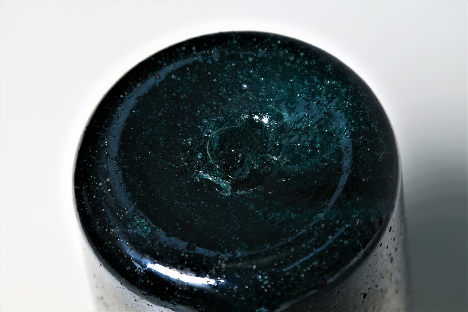 . . Cm 17,50 x 30,00 x 17,50. Green pulegoso glass, highly iridescent, 30s.