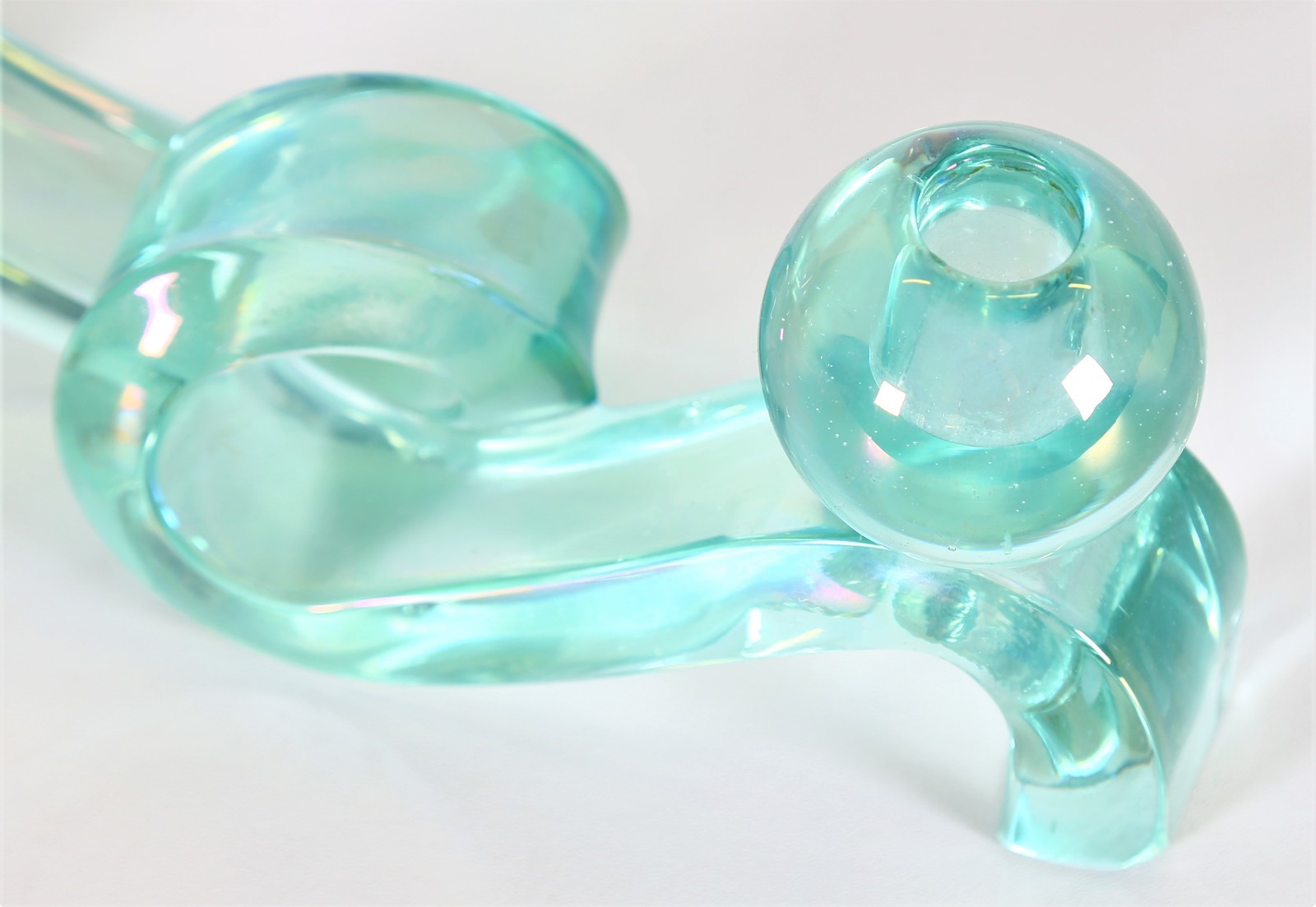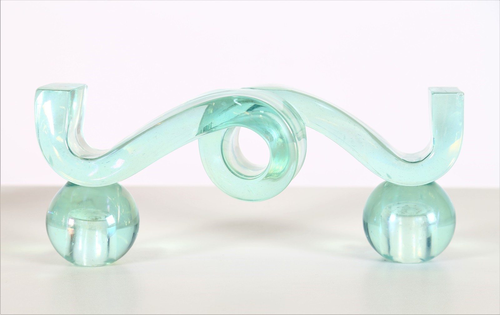 POLI FLAVIO (1900 - 1984) Coppia di candelieri. -. Cm 30,00 x 12,00 x 9,00. Coppia di portacandele a due luci in vetro verde nord iridato, lavorato a massello, mod.3910, per Seguso Vetri D’Arte 1937. Pubblicazioni: “Seguso Vetri D’Arte” di Marc Heiremans. pag.88. Presenti piccole sbeccature.