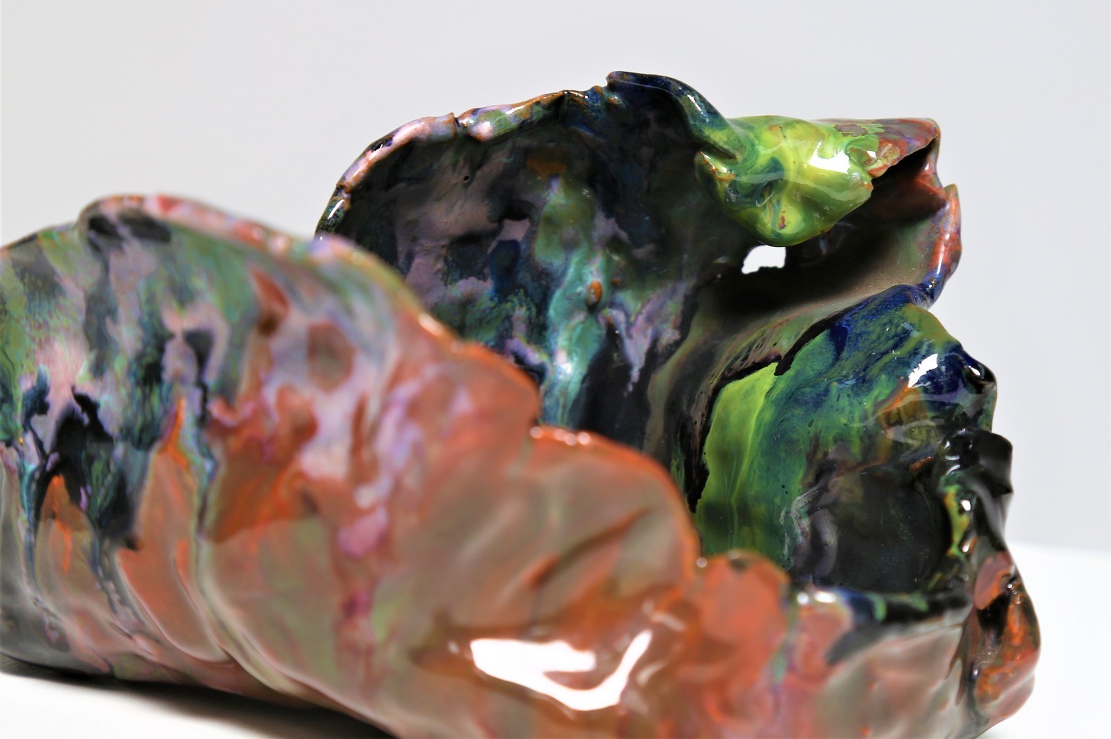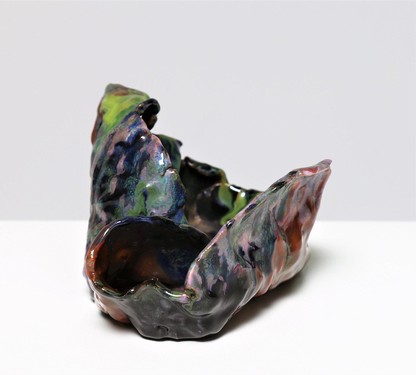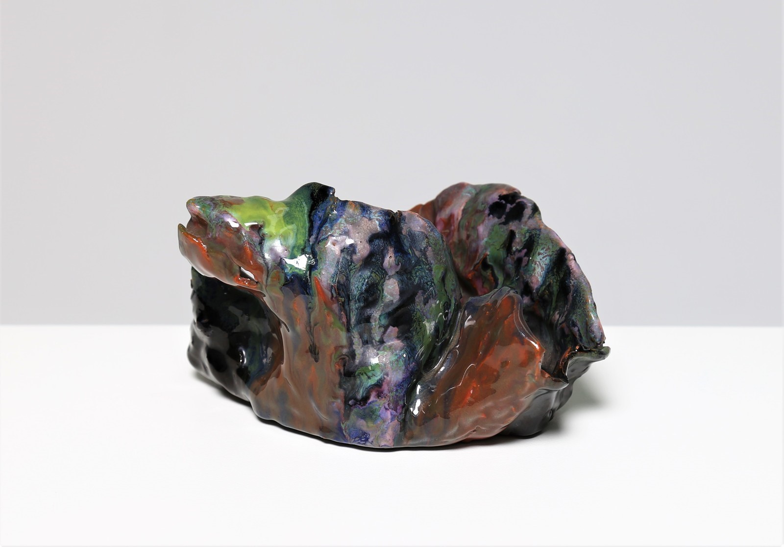 MELOTTI FAUSTO (1901 - 1986) Ciotola a cartoccio. -. Cm 18,00 x 9,00 x 12,50. Ceramica policroma, anni 50. Presente firma a sette punti. Opera archiviata presso la Fondazione Fausto Melotti, Milano.