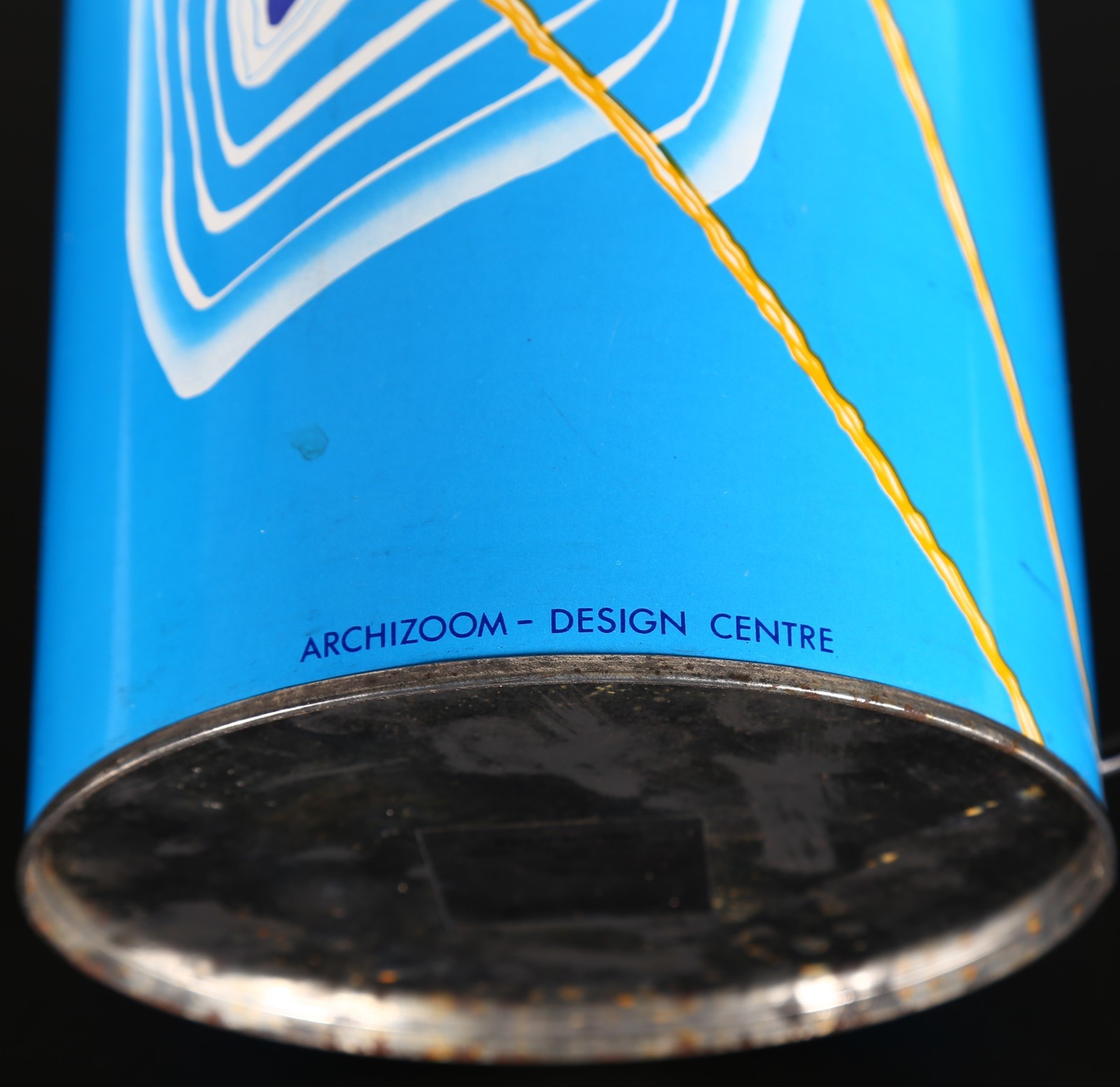 ARCHIZOOM Sempronio table lamp. . . Cm 16,50 x 35,00 x 16,50. Sheet steel and anodised aluminium finish, for Poltronova Design Center, 1968.