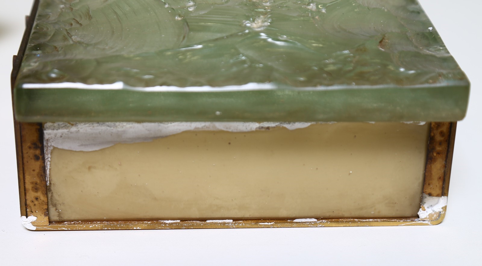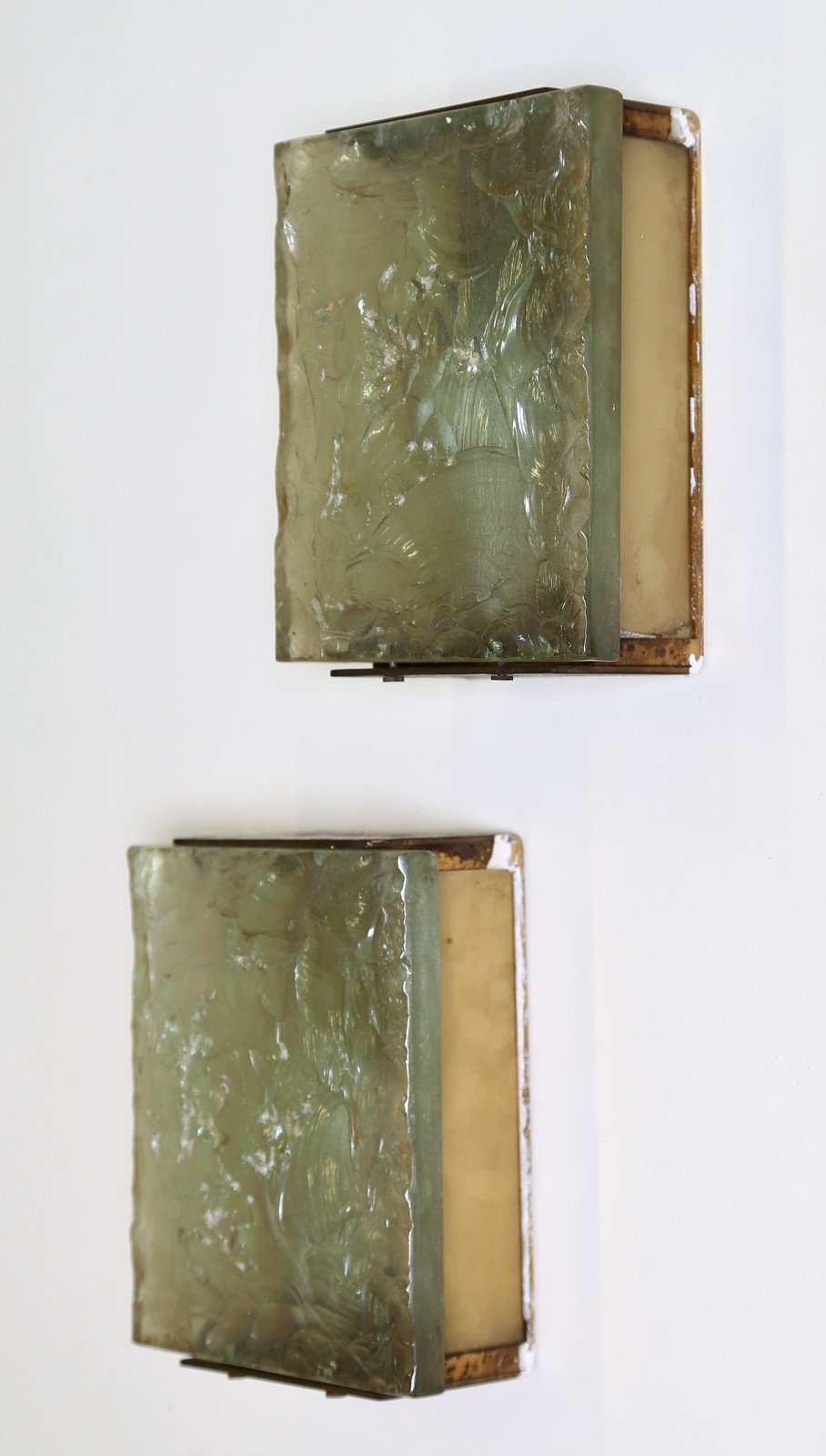INGRAND MAX (1908 - 1969) Pair of appliques, mod. 2311. . Cm 17,00 x 20,00 x 9,00. Chiselled glass and brass, for Fontana Arte, 1950s. Publications: Quaderno Fontana Arte n. 6 (1964), pg. 76.