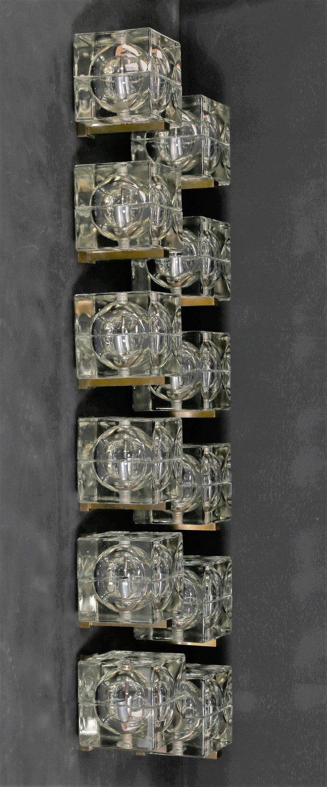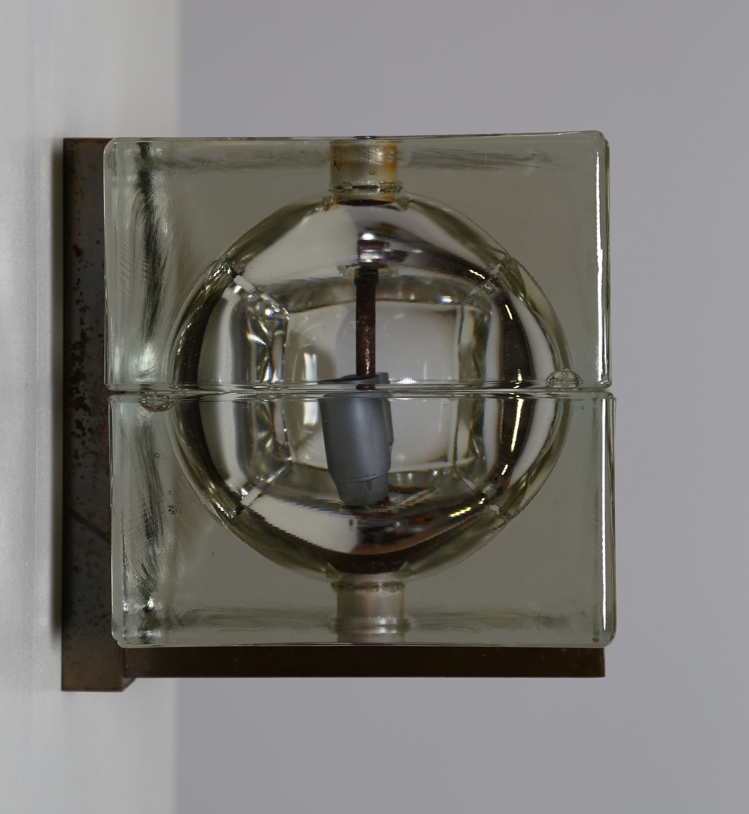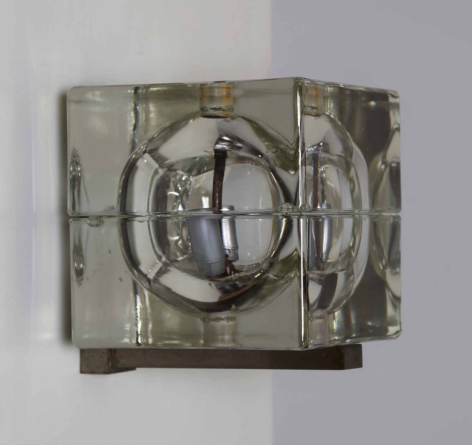 MENDINI ALESSANDRO (n. 1931) Twelve Cubosfera wall lights. . Cm 18,00 x 18,00 x 15,50. Glass with brass supports, for Fidenza Vetraria, 1965. Publications: Domus no. 467, October 1968, pg. 107.