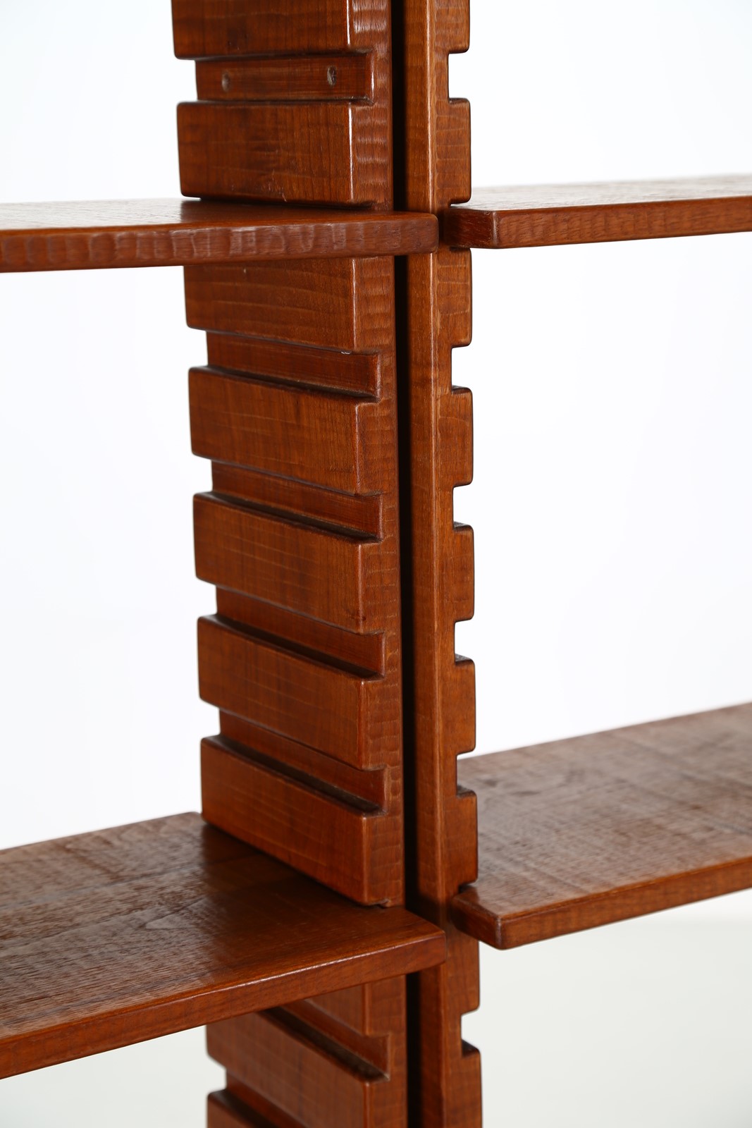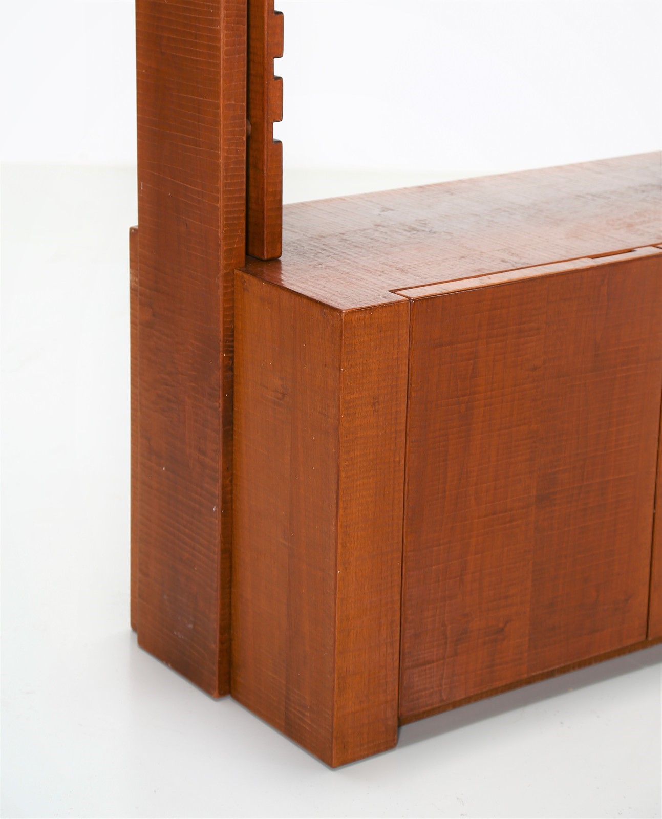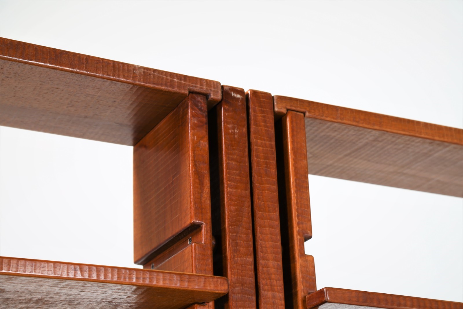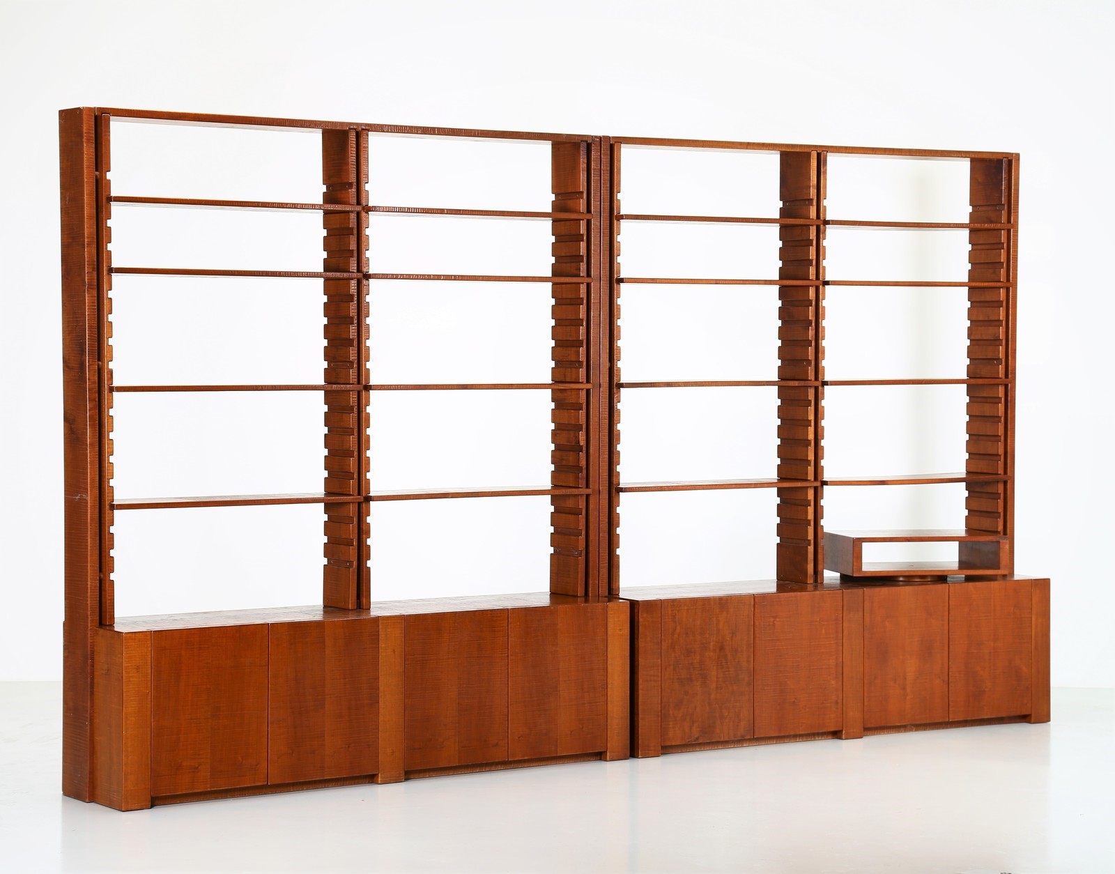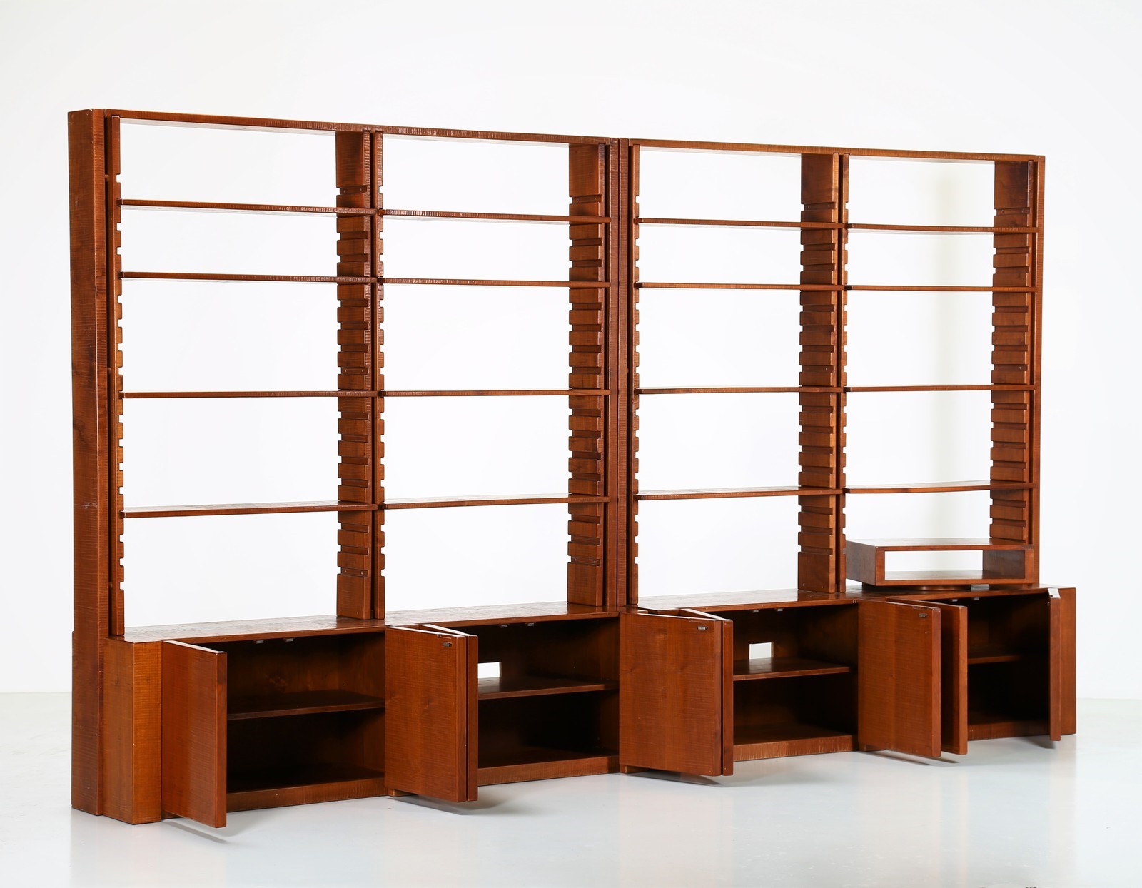 RIVADOSSI GIUSEPPE (n. 1935) Large bookcase in walnut wood. . Cm 408,00 x 230,00 x 50,00. Two-section bookcase in walnut, unique piece that is part of the exclusive furniture of Casa G. Brescia from the late 1970s.