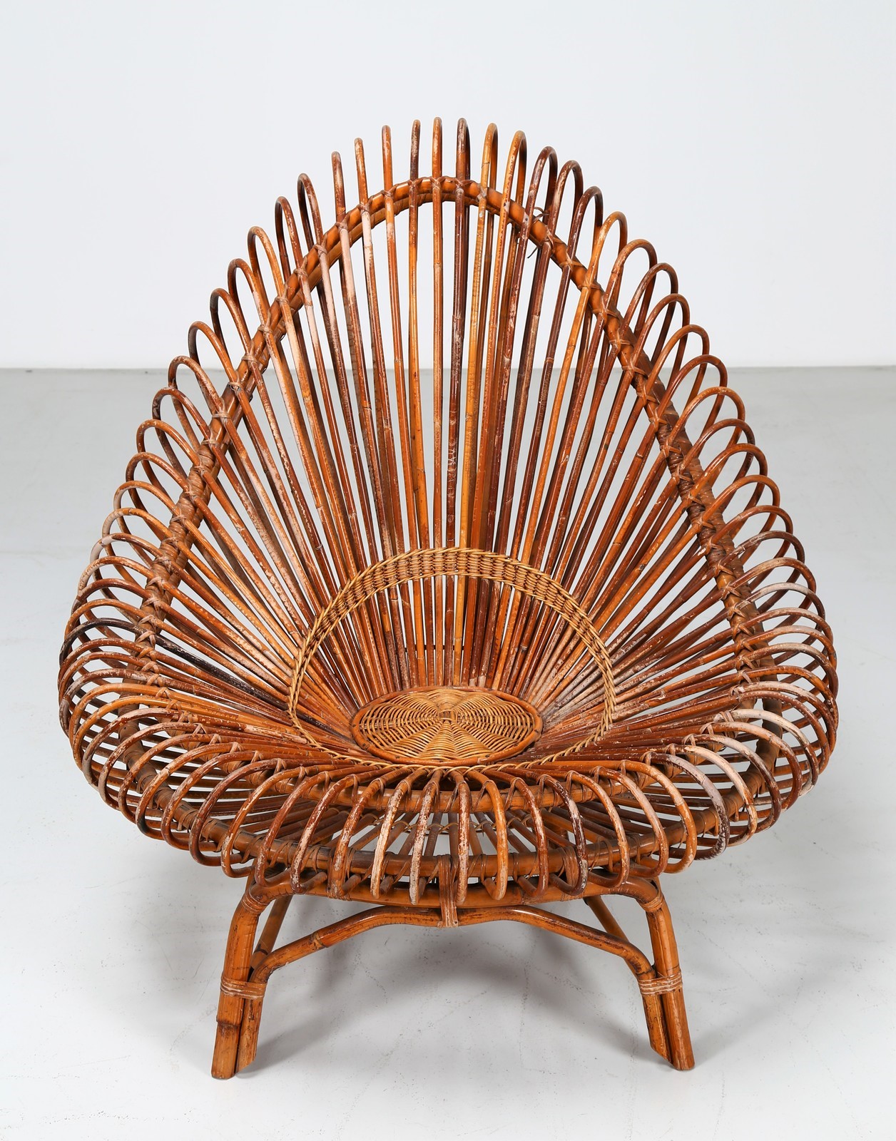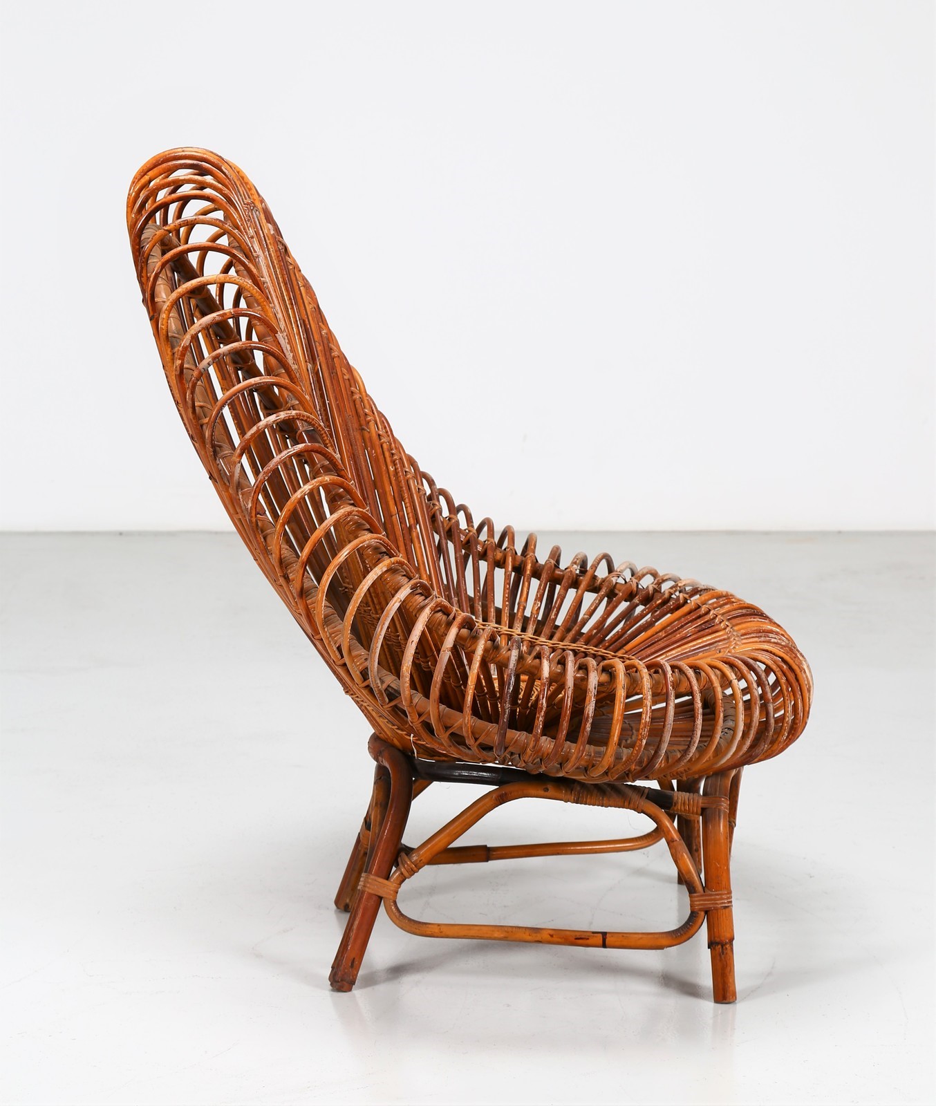 FRATELLI CASTANO Armchair. . Cm 101,00 x 105,00 x 87,00. Wicker, for Castano rattan furniture industry, Anzano del Parco, Como, 1960s. Publications: Domus no. 418, September 1964, d246.