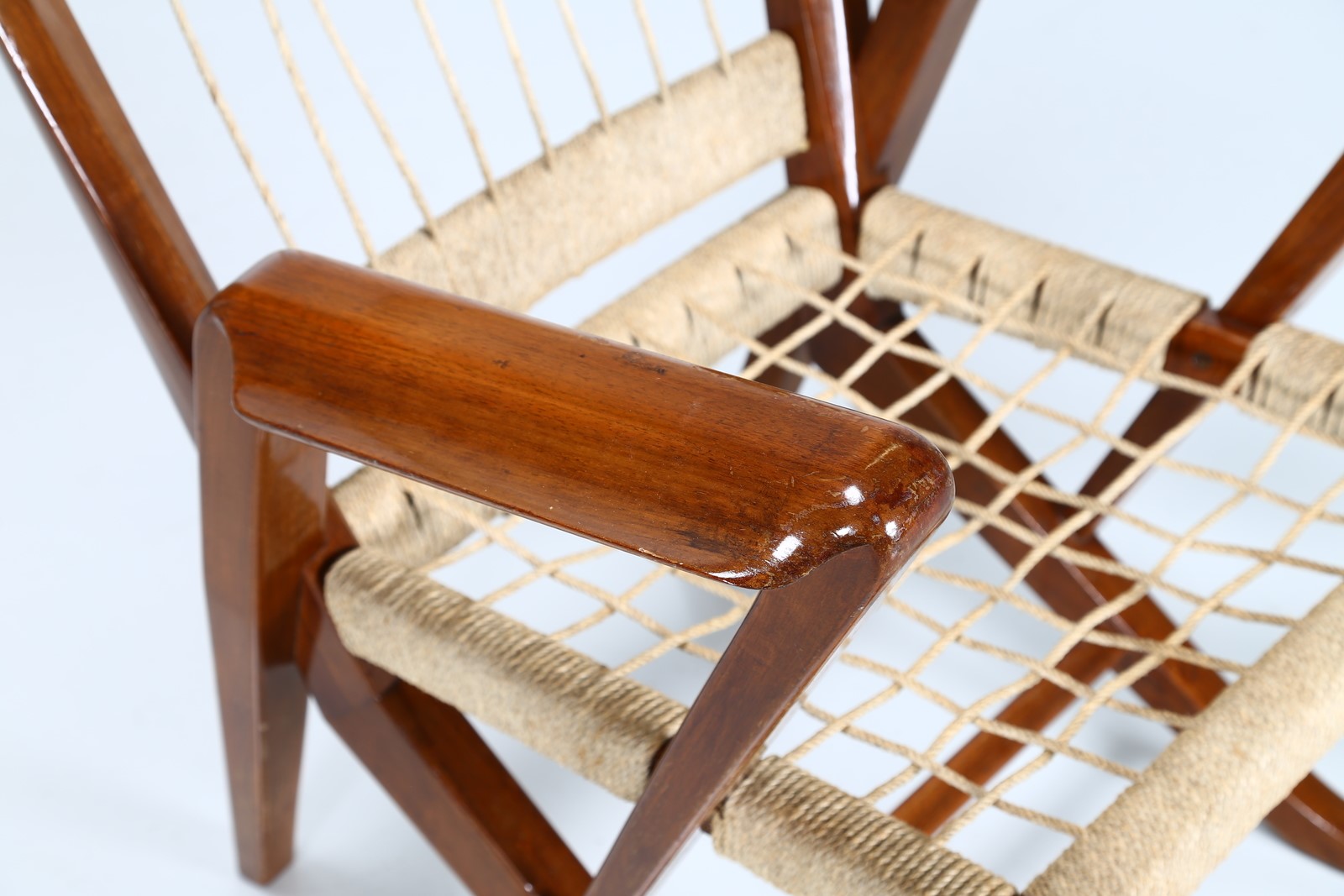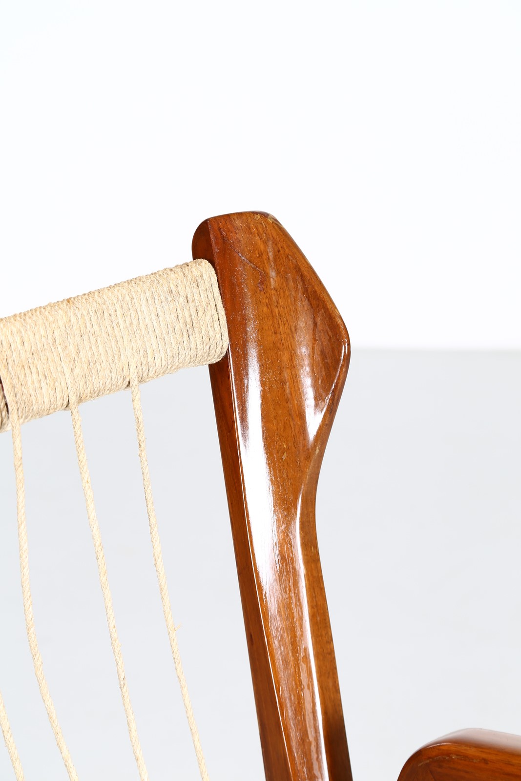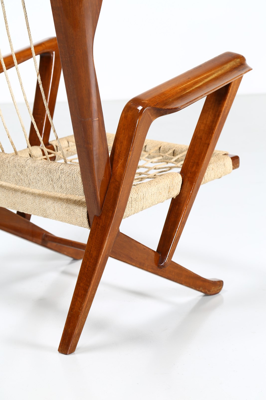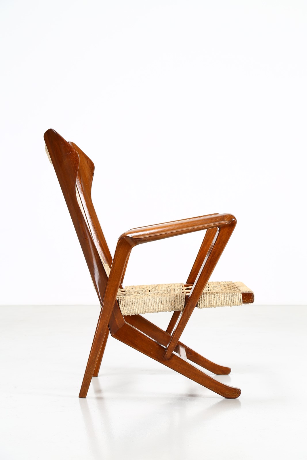 PECORINI GUGLIELMO Armchair. . Cm 80,00 x 96,00 x 76,00. Walnut wood and rope, "Edizioni I Due Forni", Florence, 1940s. Publications: Domus no. 173, May 1942, chair model.