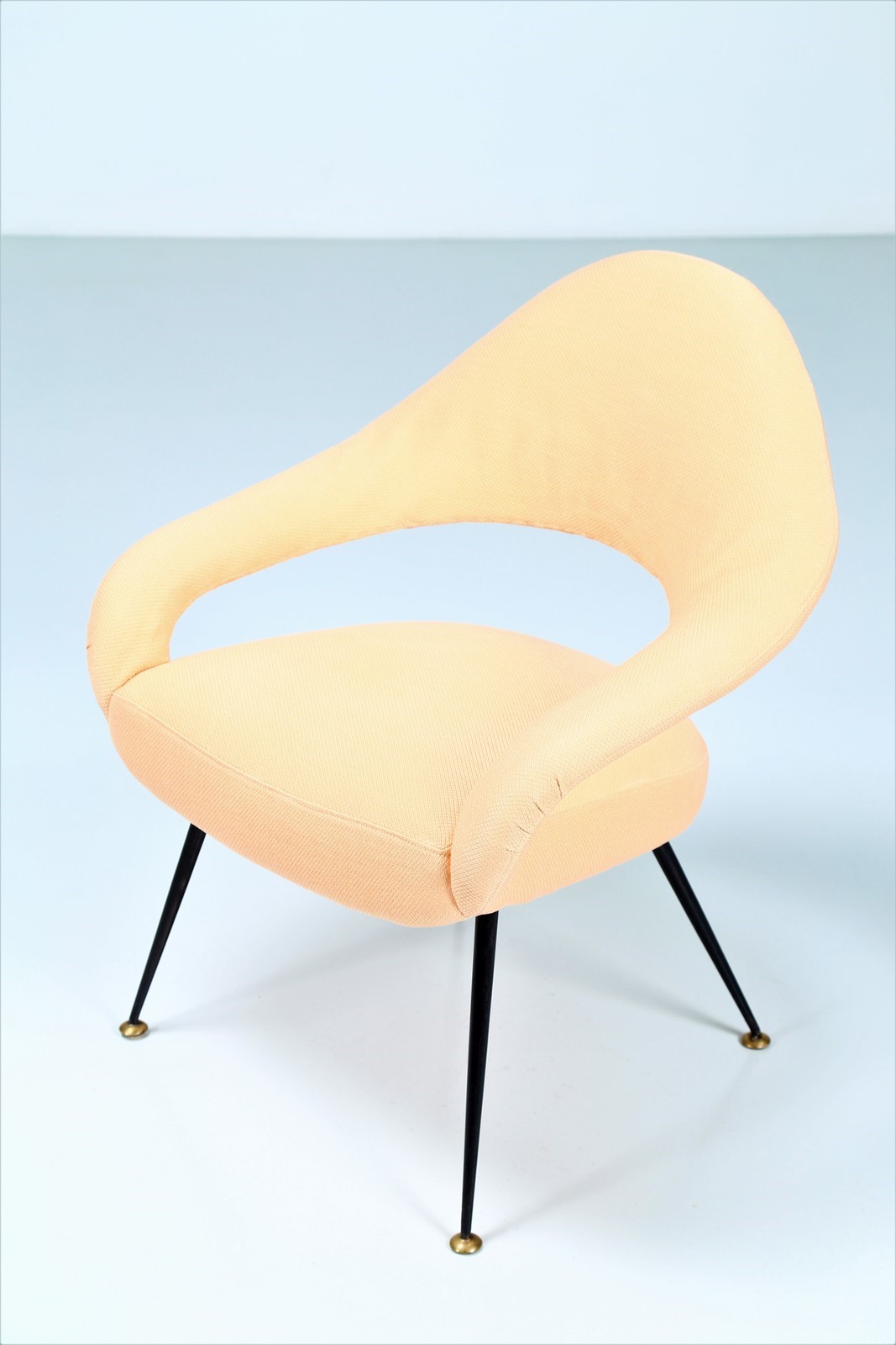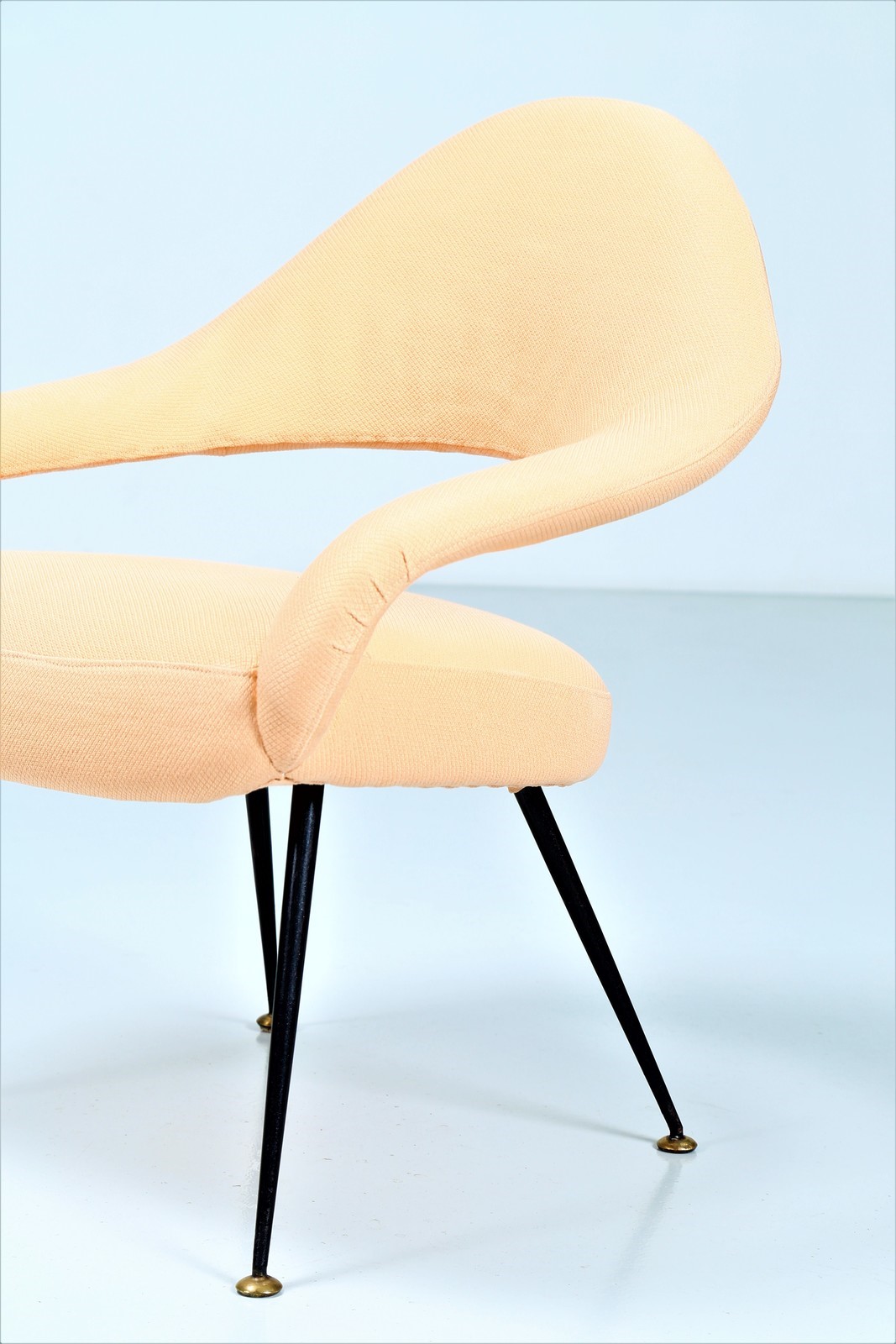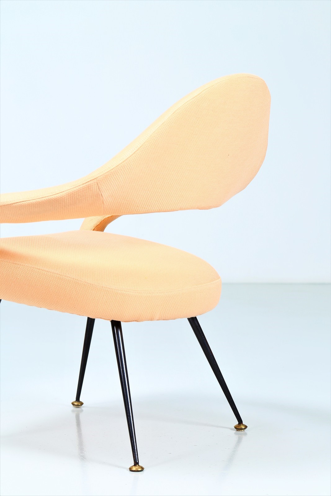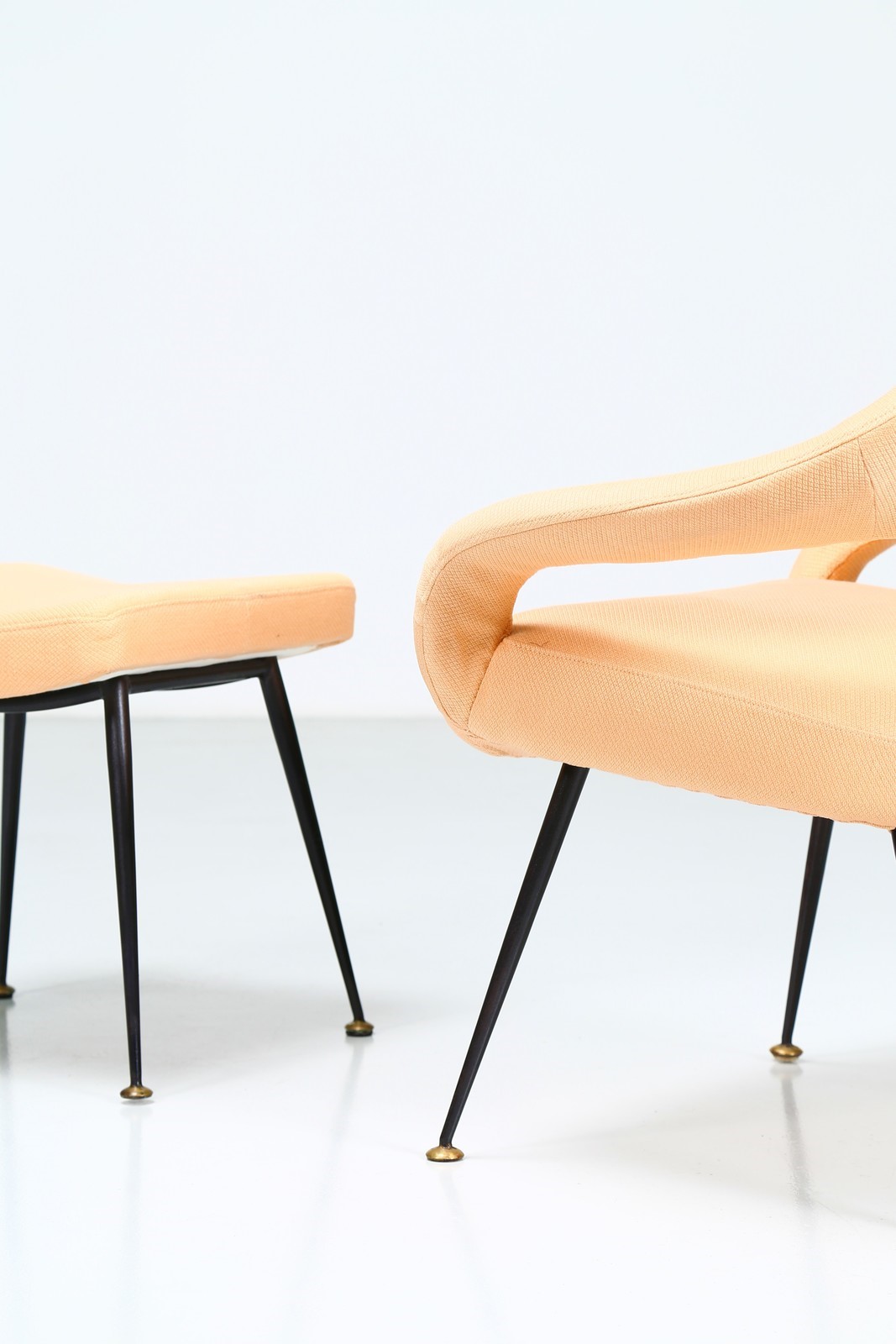 RINALDI GASTONE Armchair with footrest, mod. Du 55P. . . . Fabric, lacquered iron rod and brass, for Rima, 1955. Publication: Gastone Rinaldi Designer alla Rima, edited by Giuseppe and Jacopo Drago, pg. 183