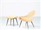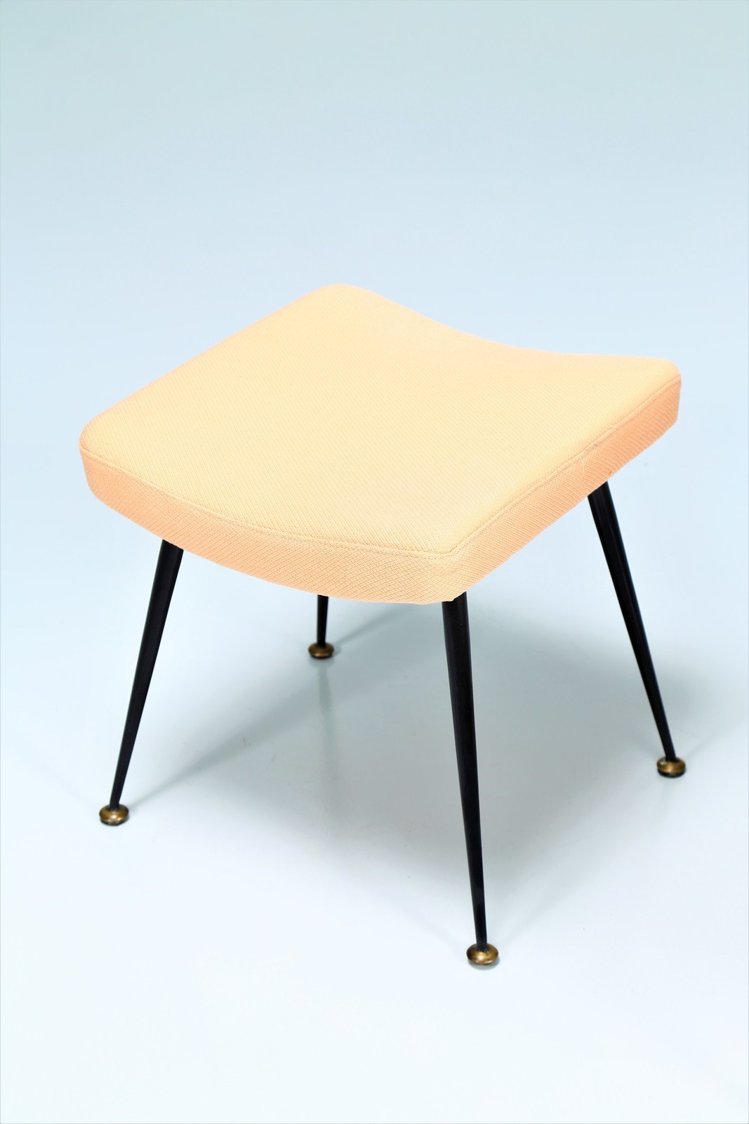 RINALDI GASTONE Poltroncina con poggiapiedi mod. Du 55P. . -. . Tessuto, tondino di ferro laccato e ottone, per Rima 1955. Pubblicazione; Gastone Rinaldi Designer alla Rima a cura di Giuseppe e Jacopo Drago, pag. 183.