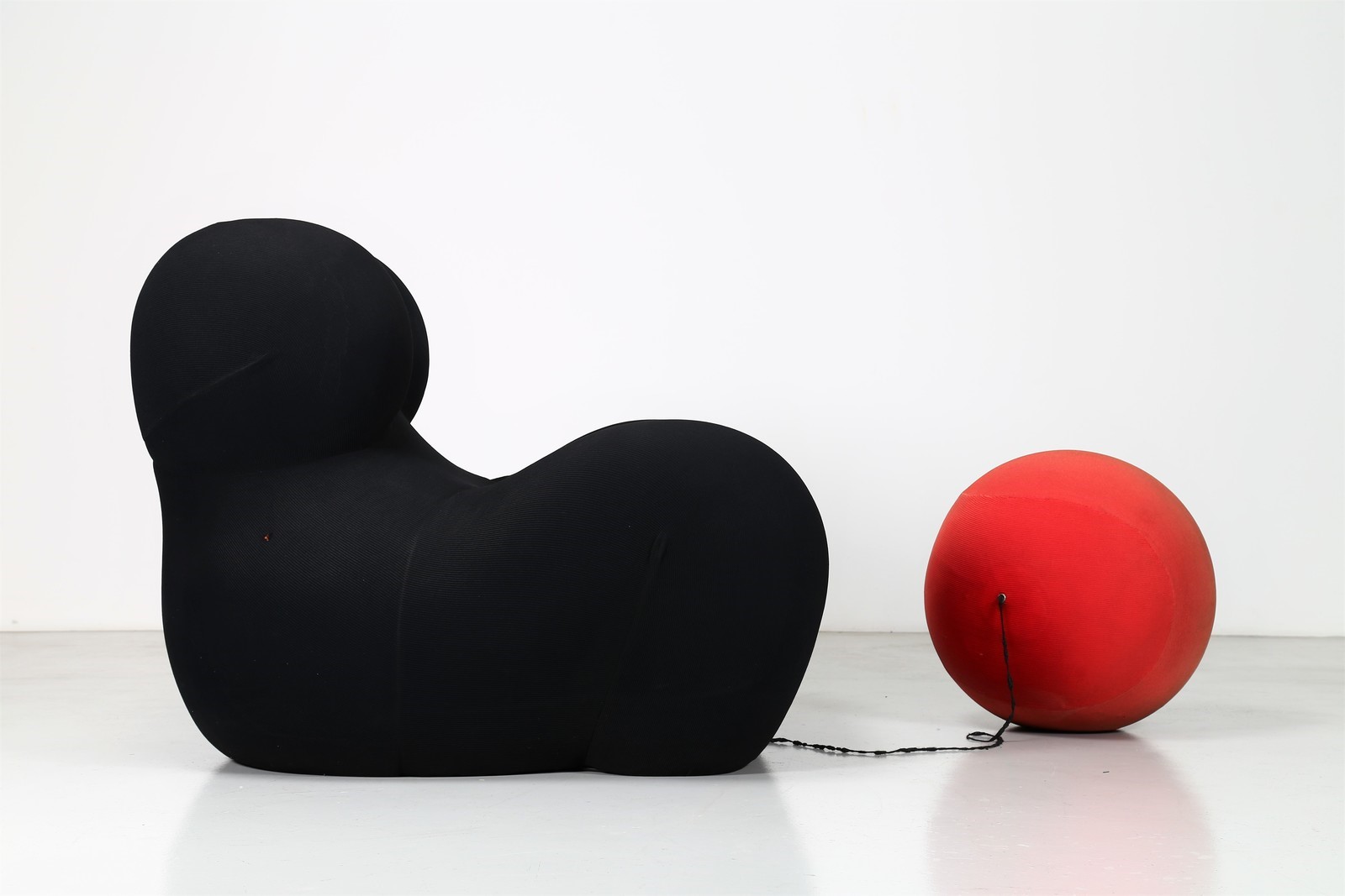 PESCE GAETANO (n. 1939) Up5 armchair with Up6 pouffe. fritware with underglaze and overglaze painted decoration. Cm 108,00 x 107,00 x 130,00. Polyurethane foam structure and elastic fabric upholstery, for B&B, Italy, 1969. Provenance: Casa Carenza, Padua. Original trademark present.