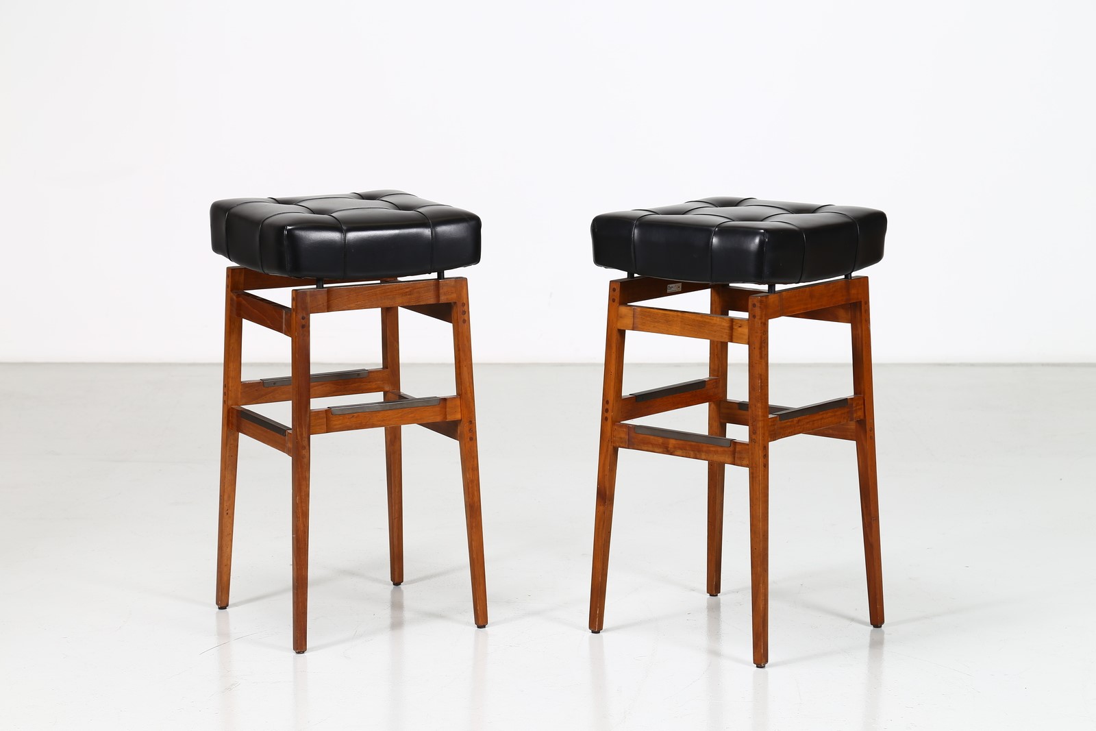 FRATTINI GIANFRANCO (1926 - 2004) Coppia di sgabelli. -. Cm 41,00 x 81,00 x 41,00. Legno di palissandro e skai, mod. 112 per Cassina 1962.