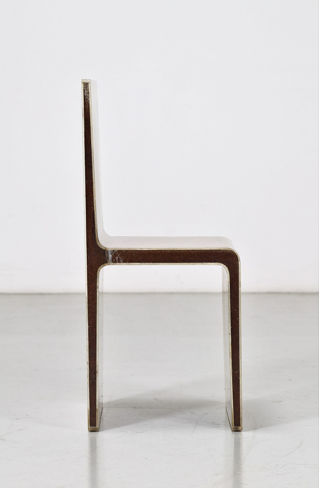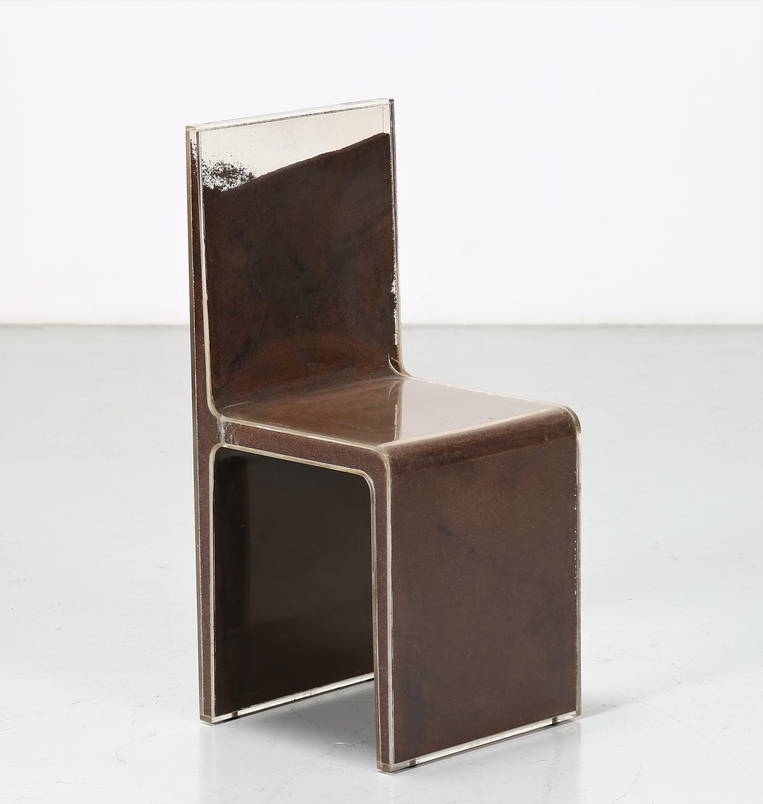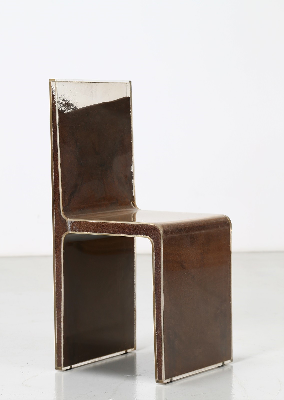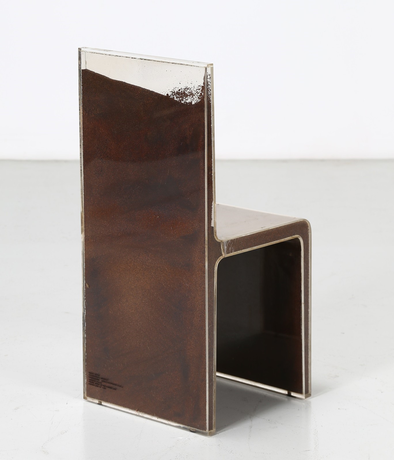 MENDINI ALESSANDRO (n. 1931) Sedia Terra. -. Cm 37,50 x 81,00 x 37,00. Struttura in plexiglas, interno in terra scura e sughero, per Bracciodiferro 1974. Targhetta presente, prima seria num. 15 di 800.