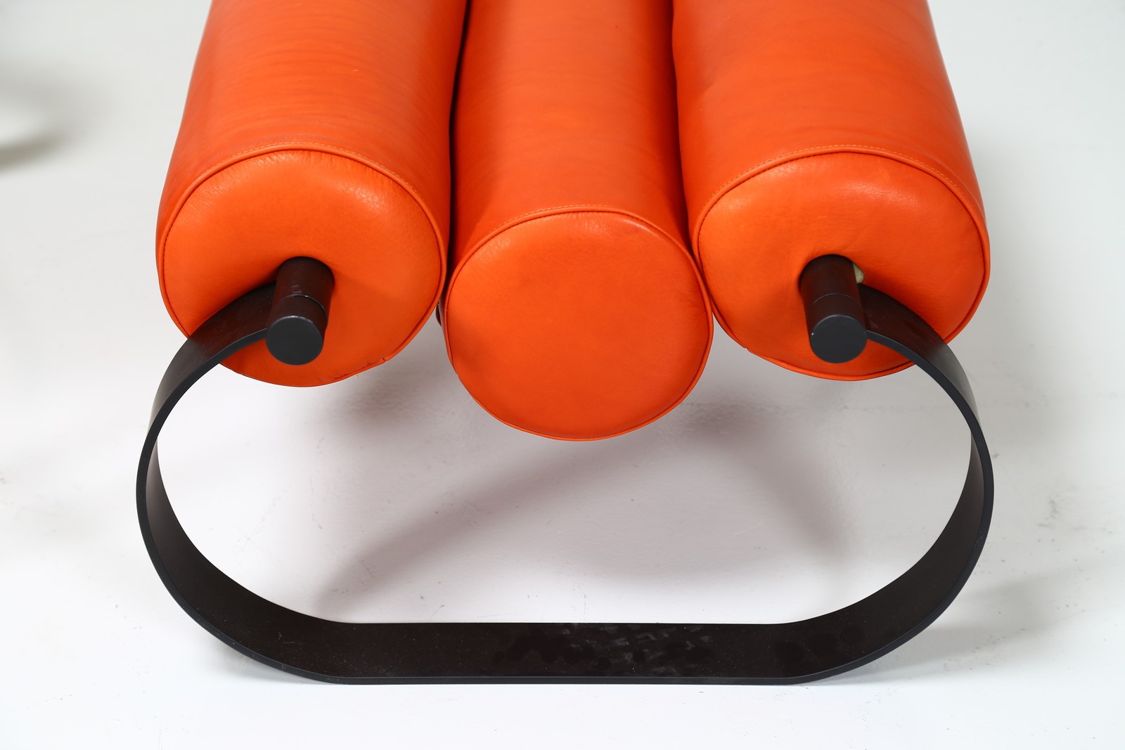 CECCHI MARZIO Poltrona con pouf Balestra. -. Cm 76,00 x 86,00 x 86,00. Metallo laccato e pelle, per Most Firenze.