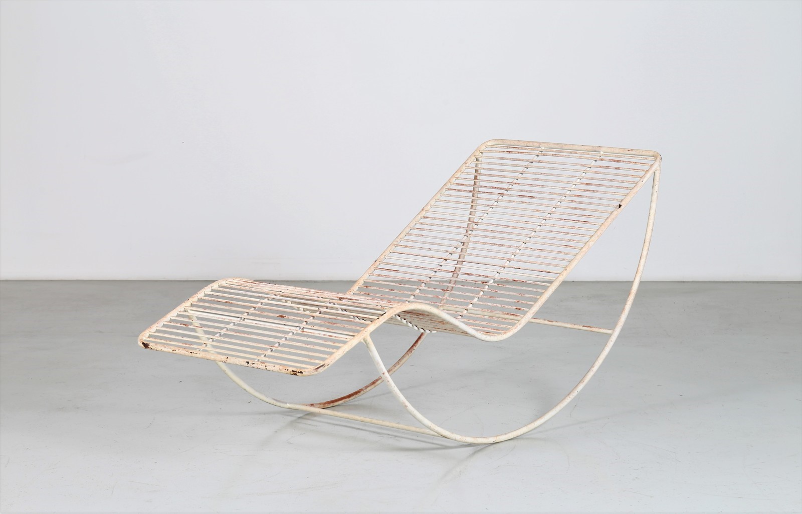 PARISI ICO (1916 - 1996) Raro Chaise longe a dondolo. . . Arco in tubolare di ferro laccato, produzione Sampietro Como 1960. Disponibile certificato di autenticità, Archivio del Design di Ico Parisi. Pubblicazioni; Ico Parisi Design, Catalogo Ragionato, Silvana Editoriale a cura di Roberta Lietti, pag. 474 - 475, 1952.AE3