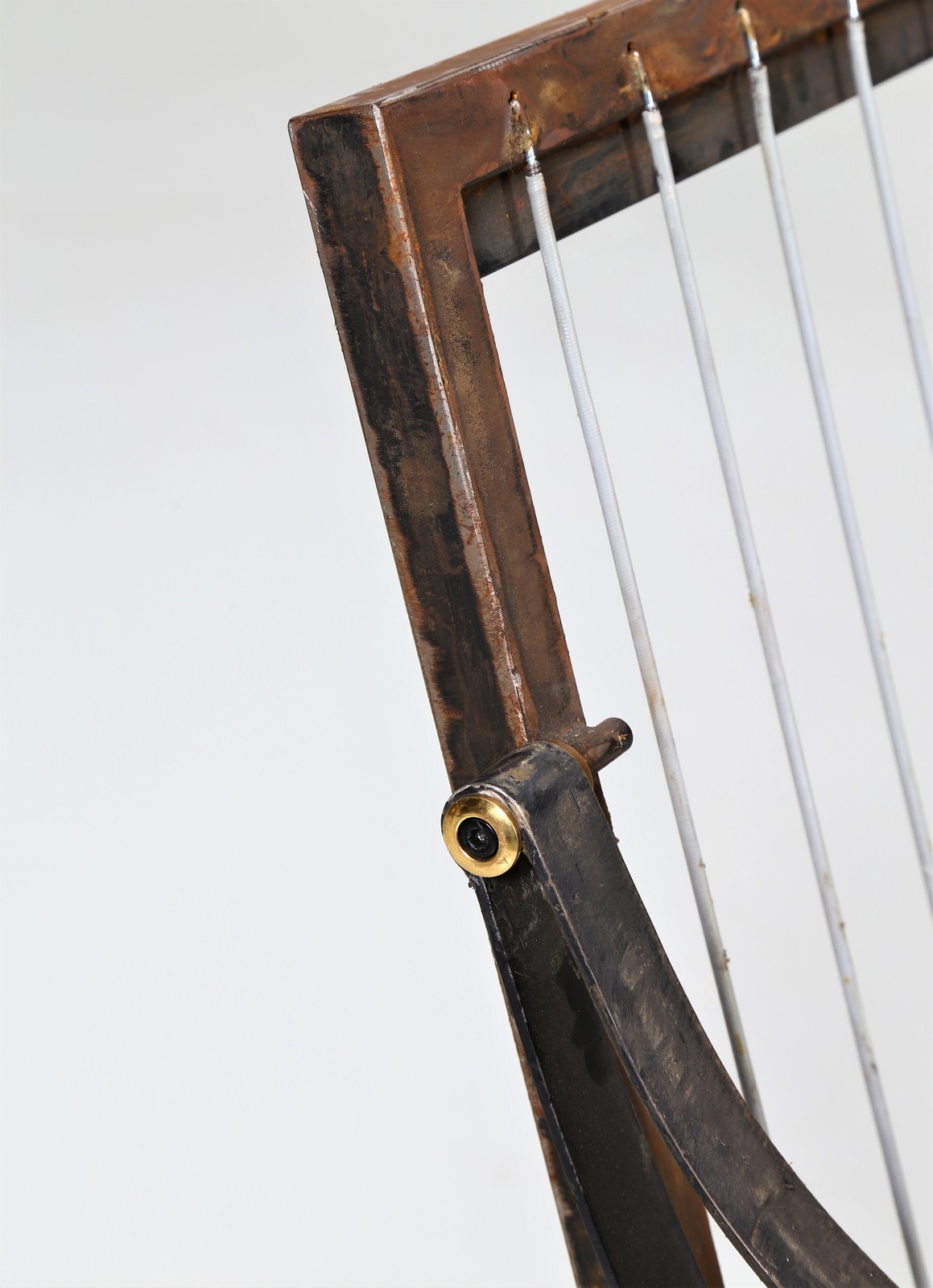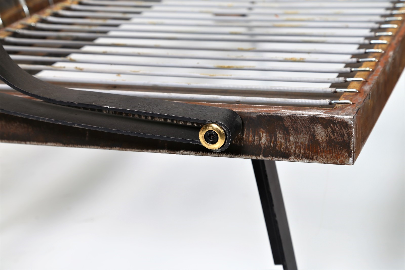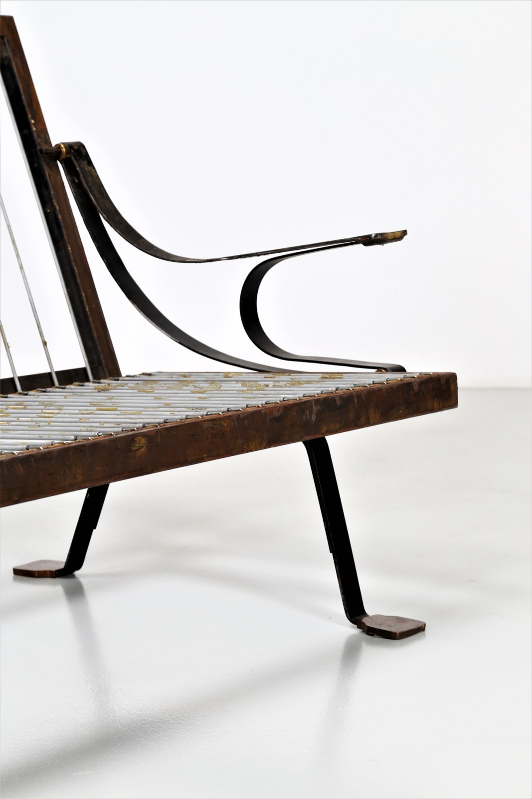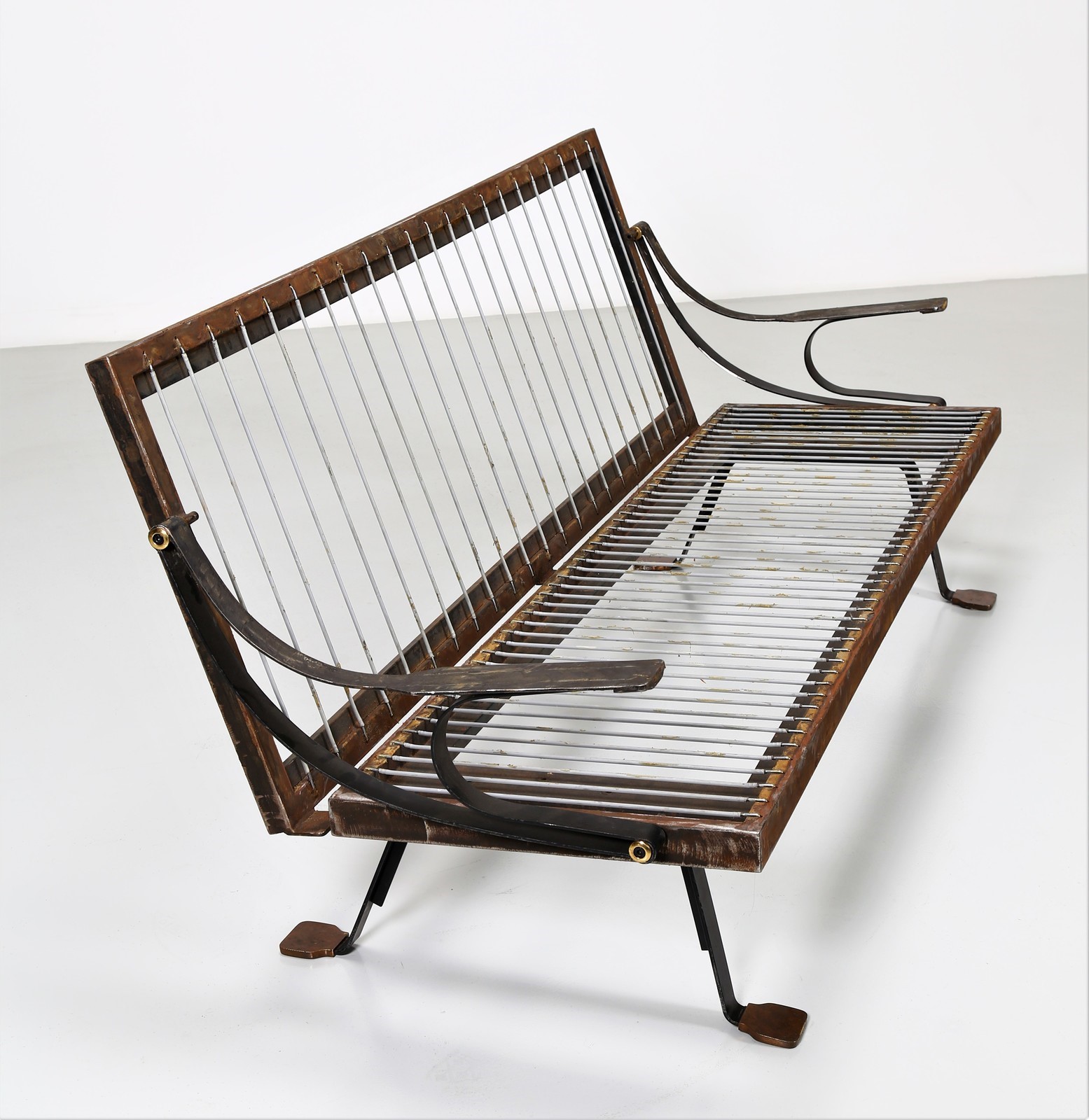 GARDELLA IGNAZIO (1905 - 1999) Digamma sofa. . Cm 197,00 x 82,00 x 83,00. Enamelled metal and brass, elastic tie rods, for Gavina 1957. Publications: Domus num. 330 maggio 1957 pag. 43; Domus num. 391 giugno 1962 pag. 23; I. de Guttry, M. P. Maino, Il mobile italiano degli anni ’40 e ’50, pag. 179, Laterza, 1992; G. Bosoni, F. Picchi, M. Strina, N. Zanardi, Brevetti del Design Italiano 1946-1965, pag. 75, Electa, 2000; G. Gramigna, Repertorio del design italiano per l’arredamento domestico 1950-1980, pag. 108, Allemandi, 1985.