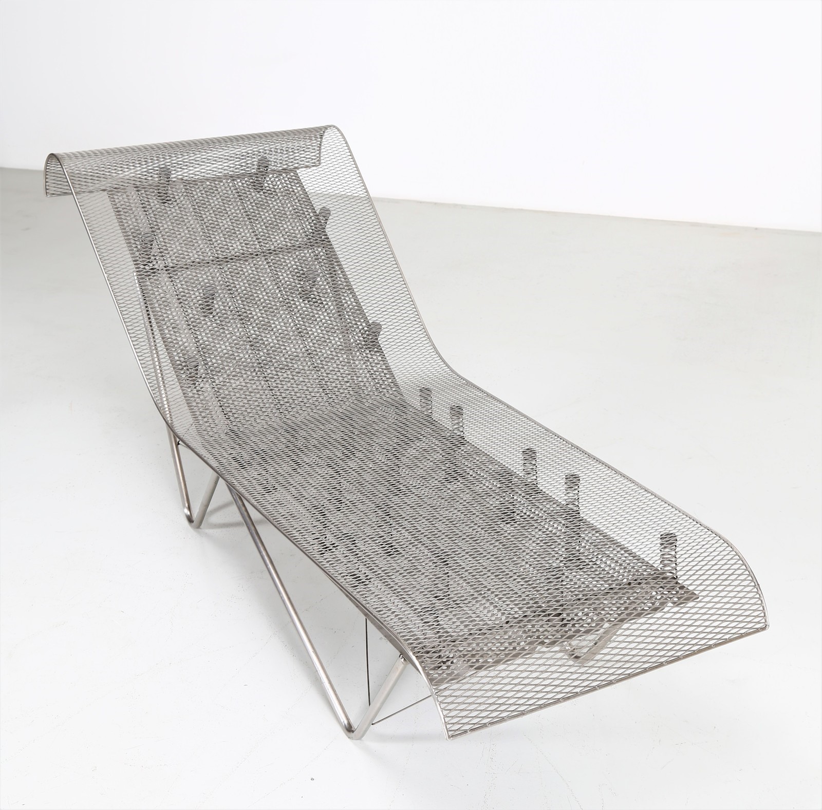 TOYOO ITŌ Chaise longe Uki. . Cm 69,00 x 73,00 x 178,00. Metallo e acciaio inossidabile, per Driade 1987.